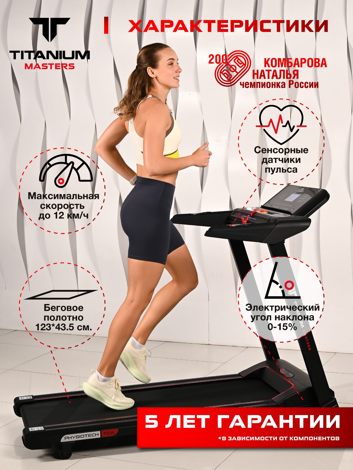 - Показания консоли время, дистанция, скорость, калории, угол наклона, шаги, пульс, жироанализатор Body Fat