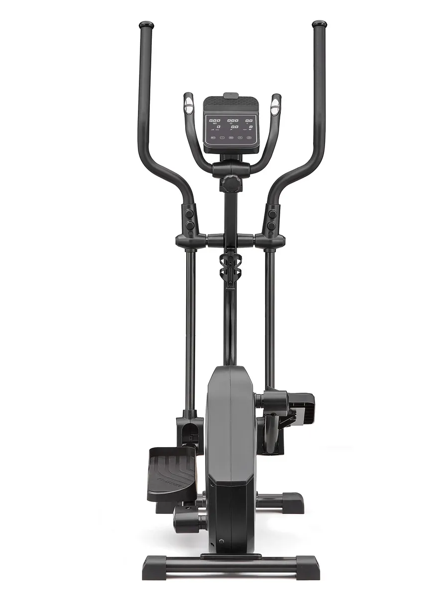 Созданный для требовательных кардио-сессий, эллиптический тренажер FR30 полностью оснащен для повышения вашей мышечной выносливости. Под гладкой рамой размещен прочный маховик весом 9 кг / 19,84 фунта, обеспечивающий плавный и постоянный темп, идеальный для домашних тренировок. Этот тренажер оснащен 32 уровнями электронного сопротивления, 18 предустановленными программами и 3 целевыми режимами, что делает его универсальным для ходьбы, длительных постоянных нагрузок или интервальных тренировок. Эллипсоид имитирует ходьбу или бег, прорабатывая мышцы ног, бедер, ягодиц, живота, пресса и спины, обеспечивая комплексную нагрузку на все тело.Эллипс FR30 отличается эллипсоидной траекторией движения, которая минимизирует нагрузку на суставы, обеспечивая комфортное сиденье для пользователя. Его магнитный привод гарантирует бесшумную работу, а интуитивно понятная 6-оконная сенсорная светодиодная консоль позволяет отслеживать ключевые показатели: скорость, время, расстояние, калории, частоту сердечных сокращений и обороты в минуту.Для более эффективных тренировок FR30 синхронизируется с Kinomap, открывая доступ к виртуальным маршрутам, соревнованиям и многопользовательским режимам. Встроенные датчики пульса на рукоятках предоставляют данные в реальном времени, а держатель для телефона или планшета над консолью создает удобный угол обзора для видео или тренировочных плейлистов. Эллиптический тренажер FR30 с Q-фактором 190 мм обеспечивает оптимальное расположение стоп для естественного и комфортного движения, снижая нагрузку на суставы и повышая эффективность тренировок.Идеальный для дома, эллипсоид FR30 сочетает в себе инновационные технологии и эргономичный дизайн, помогая достигать fitness-целей с комфортом.