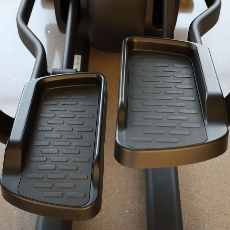 Подвижные рукоятки тренажера покрыты нескользящим резиновым ТПР материалом, а на центральных поручнях расположены кардиодатчики и кнопки для изменения сопротивления без отрыва от тренировки.