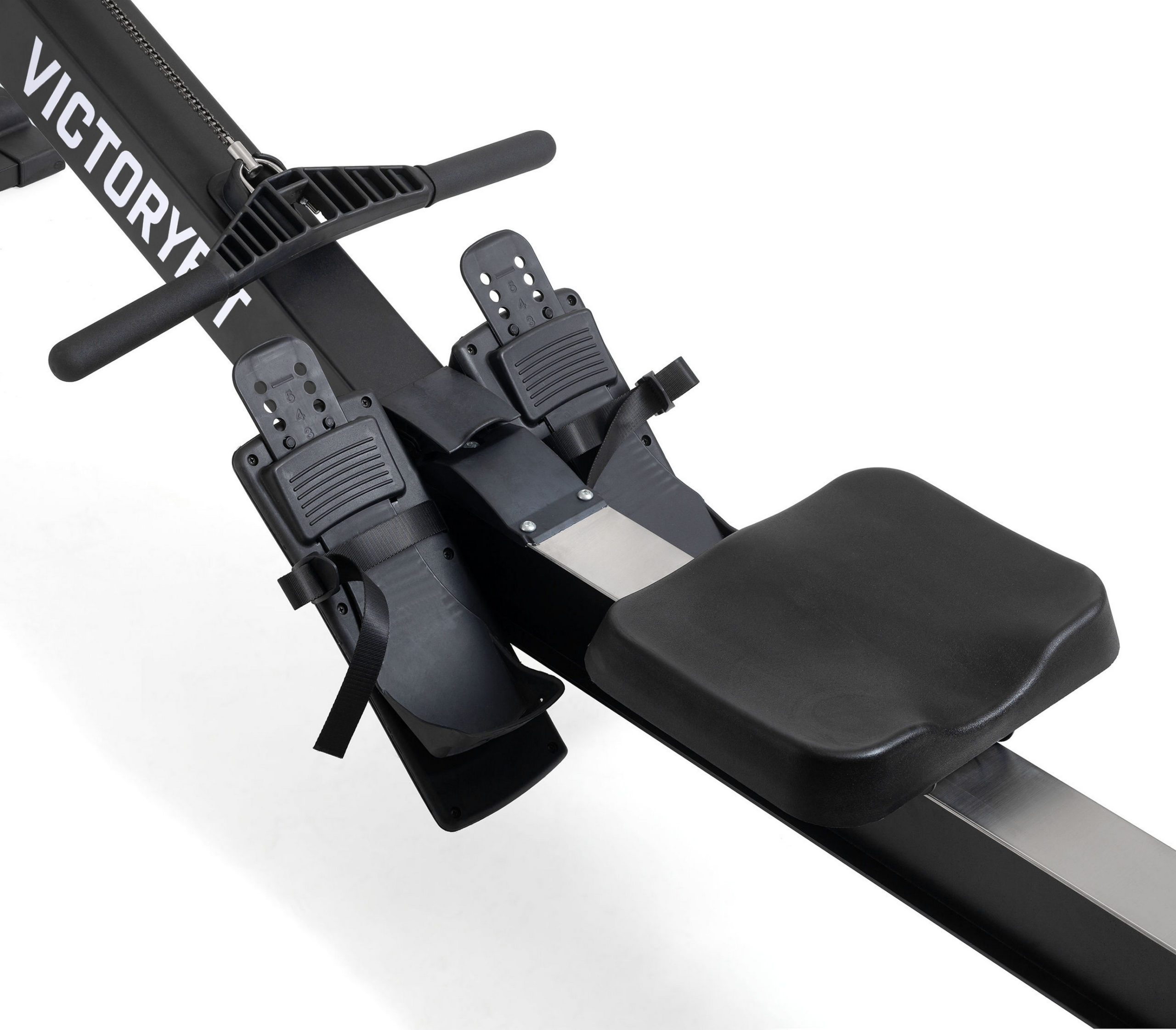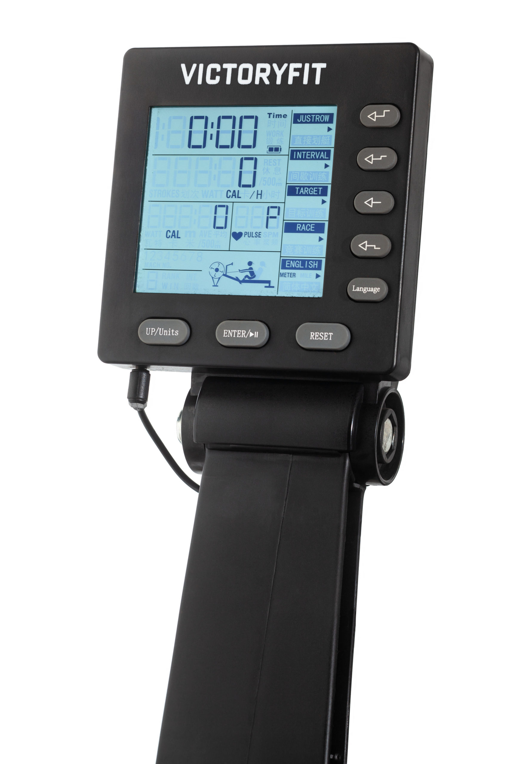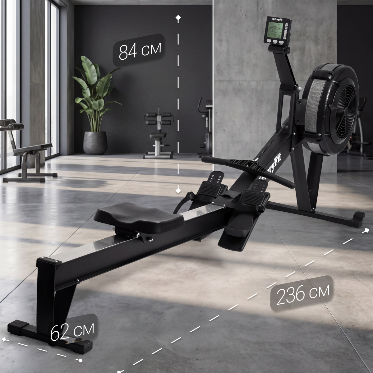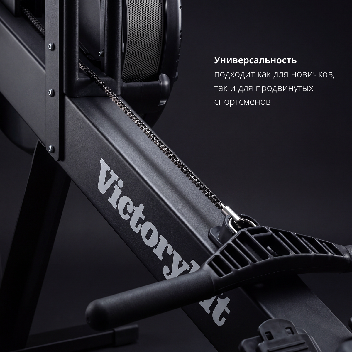 Время, расстояние, количество гребков Пульс, потраченные калории, мощность в ваттах Возможность синхронизации по Bluetooth для анализа прогресса. Надежная конструкция – прочная стальная рама с износостойкими компонентами выдерживает пользователей до 150 кг. Удобство перемещения – транспортировочные ролики позволяют легко передвигать тренажер даже в домашних условиях. Технические характеристики: Тип нагрузки: Аэродинамическое сопротивление Макс. вес пользователя: 150 кг Дисплей: 4.0″ (10 см), мониторинг пульса, калорий, расстояния и др. Материалы: Сталь, нержавеющая сталь, ударопрочный пластик Цвет: Черный матовый Размеры (ДxШxВ): 236×62×84 см Вес тренажера: 31,5 кг (37 кг в упаковке) Гарантия: 12 месяцев Для кого этот тренажер? Для домашних тренировок – компактный и устойчивый, подходит даже для небольших помещений. Для корпоративных залов – профессиональная сборка и долговечность. Для спортсменов – эффективная подготовка к соревнованиям по гребле. Почему стоит выбрать гребной тренажер VF-AR700? Качество VictoryFit – проверенные материалы и продуманная эргономика. Универсальность – подходит как для новичков, так и для продвинутых спортсменов. Результат – сжигание жира, рост мышечной силы и улучшение выносливости.Достигайте новых высот в тренировках с VF-AR700 – вашим надежным спортивным партнером!