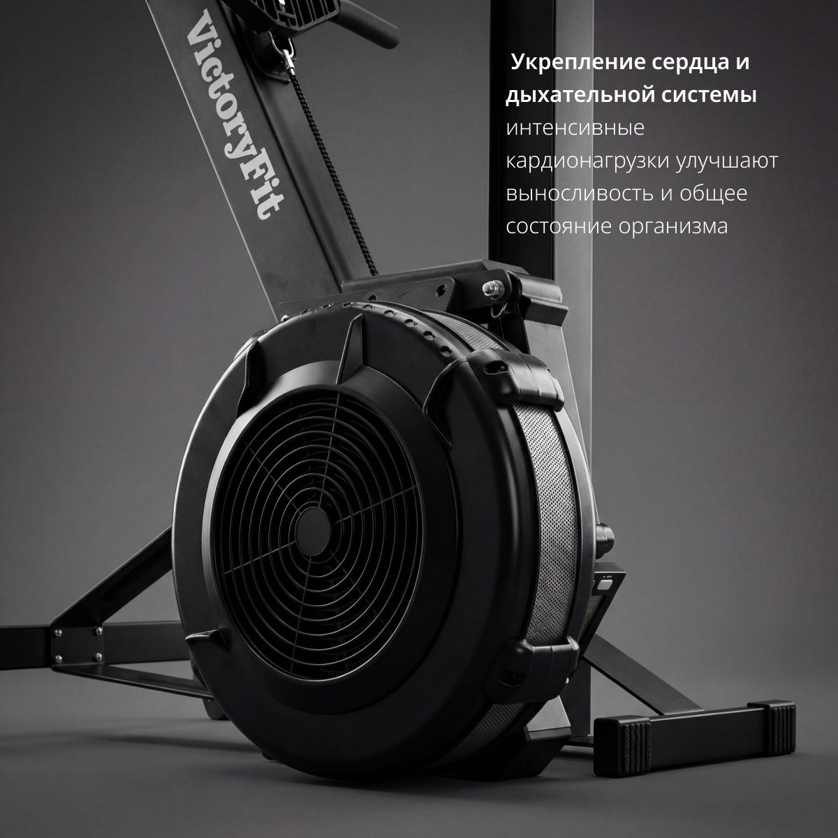 Гребной тренажер VF-AR700 от VictoryFit – это полупрофессиональное оборудование для комплексного развития мышц и улучшения работы сердечно-сосудистой системы. Благодаря аэродинамическому сопротивлению он обеспечивает плавную, но интенсивную нагрузку, максимально приближенную к реальной гребле.