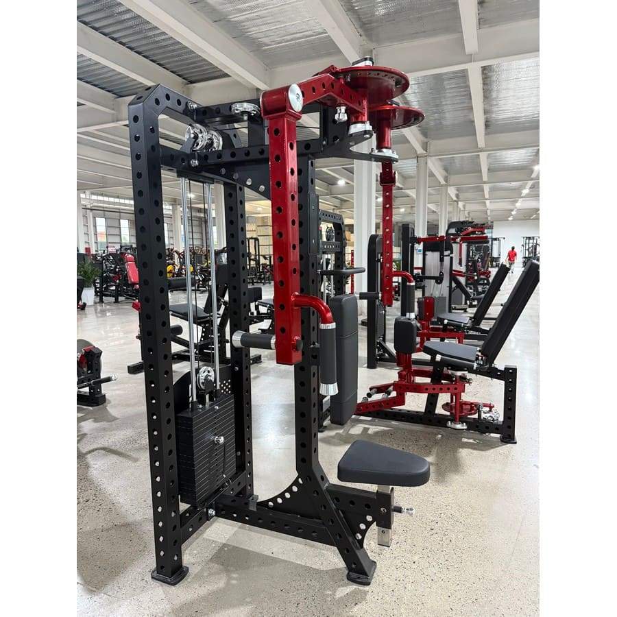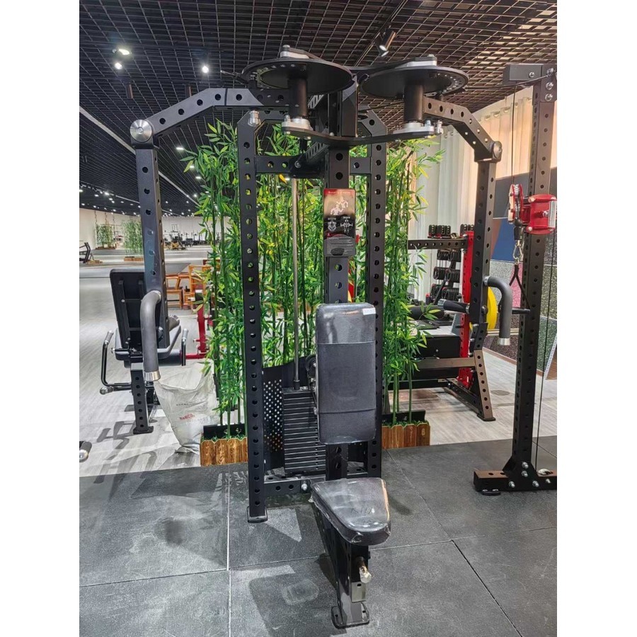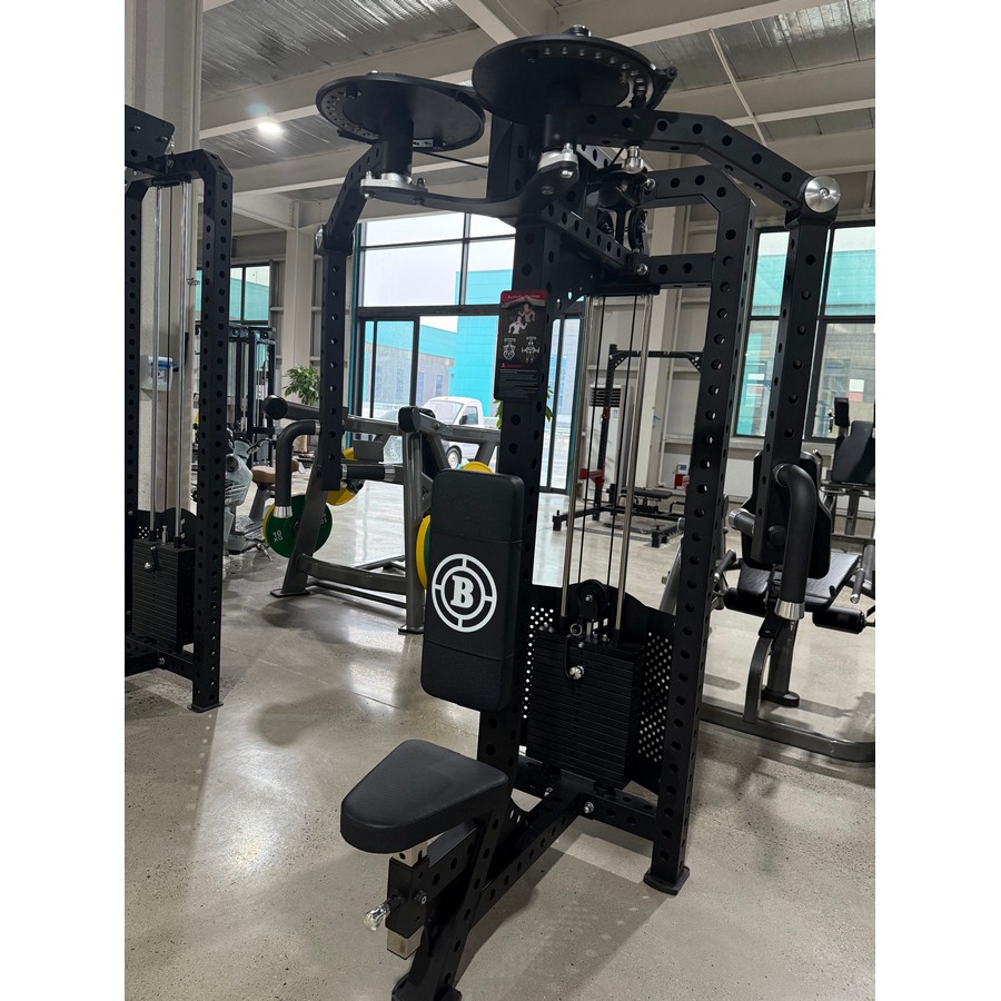 Нагрузка изменяется в диапазоне от 5 до 80 кг с шагом 5 кг с помощью магнитного стального штифта на спиральном шнуре. Конструкция тренажера выдерживает максимальный вес пользователя 180 кг, благодаря профилю рамы и стека из стальной трубы 50х80 мм с толщиной стенки 2,5 мм. Тренажер выполнен в компактном дизайне при котором стек расположен перед пользователем, а рукоятки в верхней части.