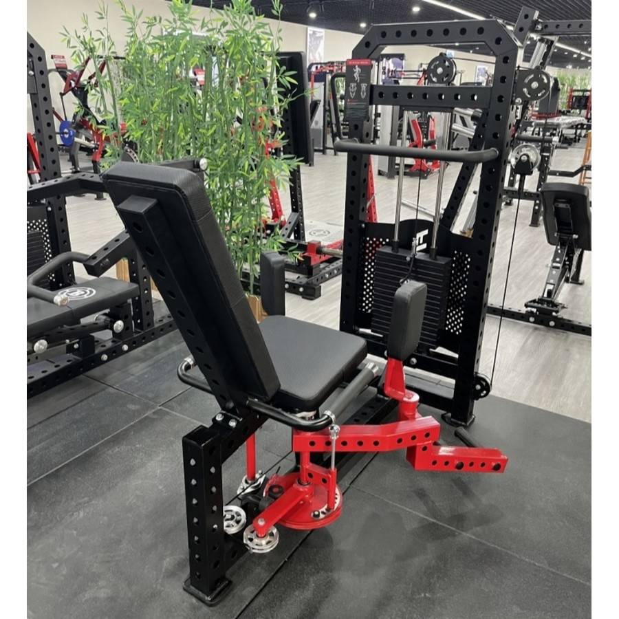 Амплитуда движения регулируется в 6 положениях с помощью пружинного фиксатора, быстро адаптируя тренажер под рост пользователя и под тип упражнения. Большая рукоять для смены положения удобно расположена под под правой рукой атлета. Биомеханически правильный наклон спинки и боковые ручки для фиксации тела, покрытые нескользящим резиновым покрытием, способствуют правильной изоляции целевых мышечных групп бедра. Большие обрезиненные подножки подходят для пользователей с разным размером стопы.