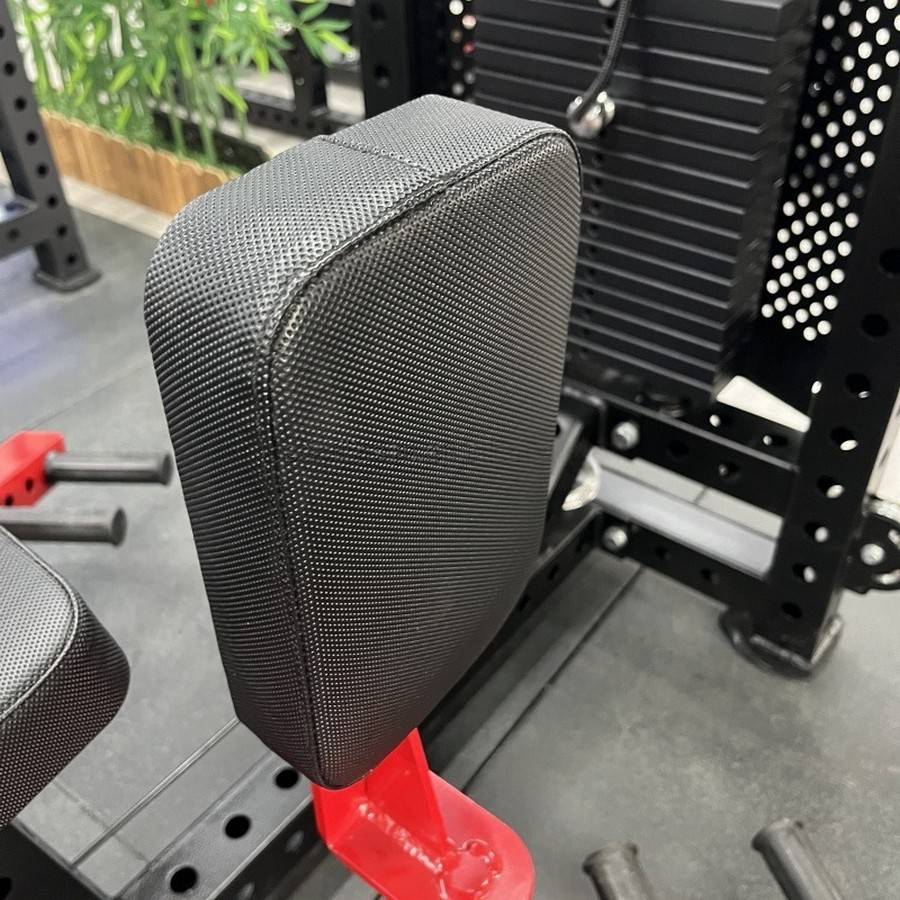 Синхронность и плавность движений правой и левой ноги обеспечены качественными шарнирными наконечниками и промышленными подшипниками. Вращающиеся подушки для ног со свободной регулировкой позволяют быстро сменить выполняемое упражнение и уменьшают давление на коленные суставы. Полноразмерные подушки сиденья и спинки с контурной формой придают дополнительный и комфорт и позволяют занять удобное положение на тренажере пользователям любой комплекции. Все мягкие части тренажера имеют наполнитель из цельных кусков ППУ и покрыты прочной и гипоаллергенной ПУ кожей.