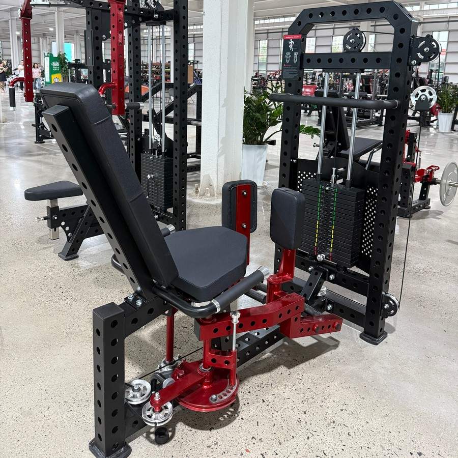 Конструкция тренажера имеет большой запас прочности и выдерживает максимальный вес пользователя 150 кг, благодаря профилю рамы и стека из стальной трубы 75х75 мм и 50х80 мм с толщиной стенки 2,5 мм. Тренажер выполнен в компактном дизайне при котором спорстмен расположен напротив рамы стека. Это позволяет менять нагрузку и настроить диапазон движения, не вставая с тренажера.