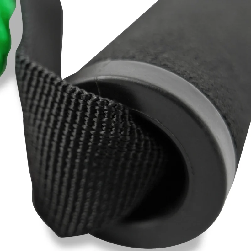 Усиленный латексный жгут заключён в прочный текстильный рукав, защищающий от повреждений и обеспечивающий безопасность при тренировке. Эргономичные нескользящие ручки делают упражнения комфортными и стабильными.