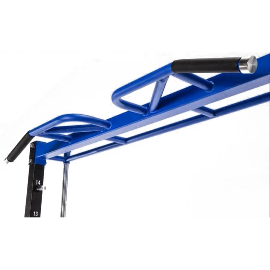 Приятным дополнением служит турник с мультихватом, который позволяет проводить различные вариации подтягиваний с собственным весом. Также на верхней балке тренажера расположено стальное крепление для зацепа функиональных петель, троса (подробнее в видео) или каната.