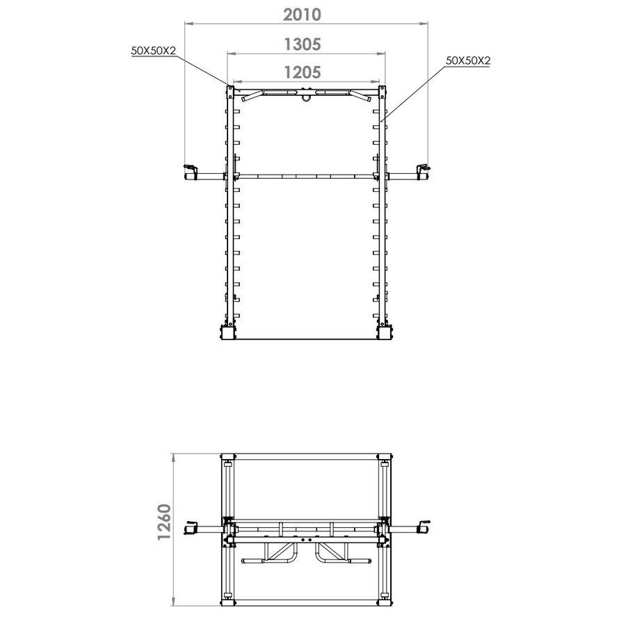 Профиль рамы: стальной квадратный профиль 50х50 мм, толщина стенки 2 мм.Профиль рукояток и направляющих: стальная труба D=25 мм.Расстояние между стойками: 120,5 см.Максимальная нагрузка, кг: 200.Вес, кг: 150.Вес в упаковке, кг: 170.Размер (ДхШхВ): 126х201х210 см .Размер в упаковке (ДхШхВ): 210х43х20 см.Объем упаковки, м. куб.: 0,49.Страна-производитель: Китай.- Бренд VERTEX