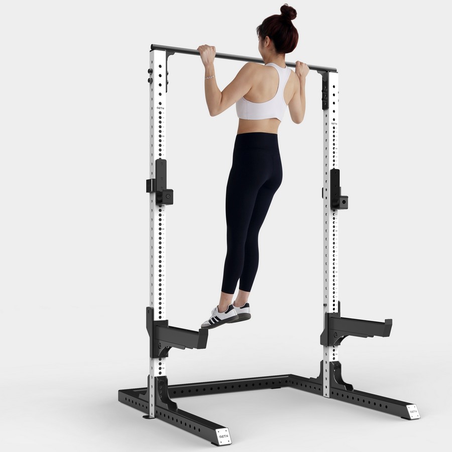 Верхняя балка тренажера оснащена турником для подтягиваний для тренировки различных групп мышц, позволяя подтягиваться узким, широким, и обратным хватами. Устойчивость и прочность столь тяжелой и мощной конструкции обеспечивают стальные уголки на вертикальных и горизонтальных опорах. Все части силовой рамы скреплены прочными оцинкованными болтами и самостопорными гайками. Рама поставляется в разобранном виде в компактной и надежной транспортной упаковке.