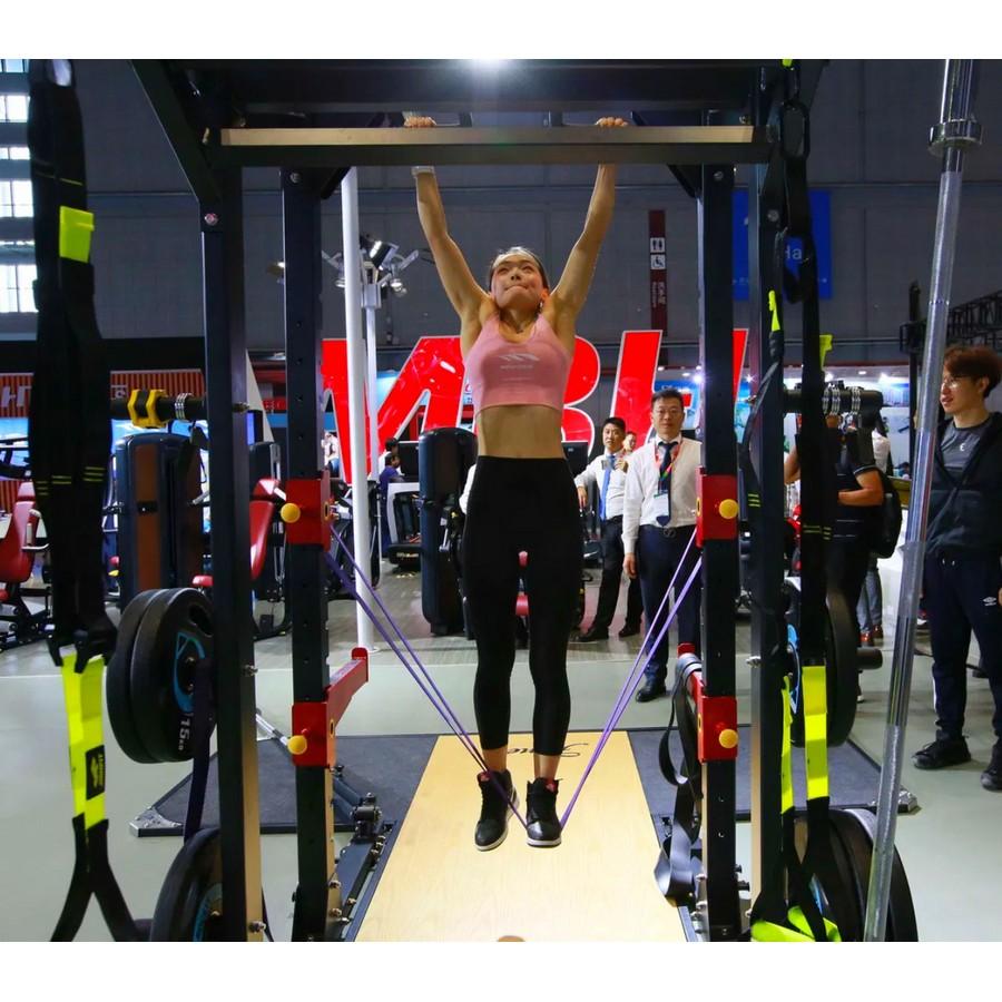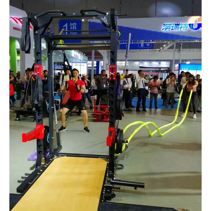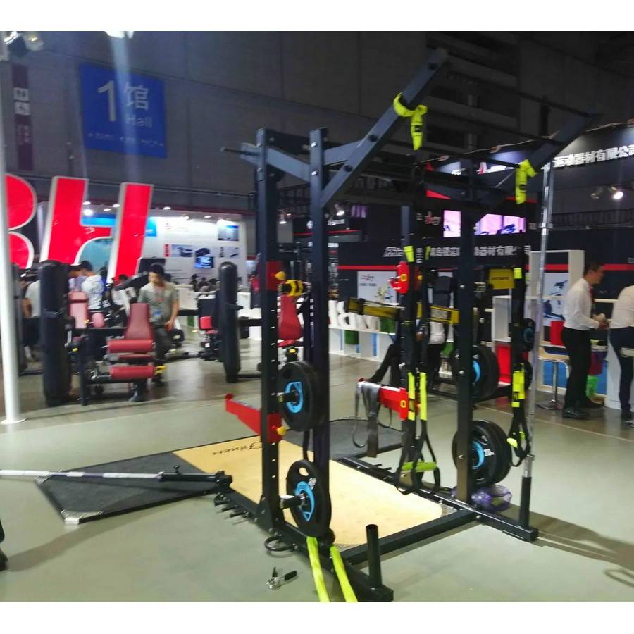Назначение: профессиональное.Общий вес: 327 кг.Общий вес в упаковке: 367 кг.Размер рамы с помостом (ДхШхВ): 350х310х260 см.Материал помоста: резина, массив дерева.Толщина помоста: 3 см.Профиль рамы: высокопрочная стальная труба с профилем 80х80 мм (толщина стенки 3 мм) и 50х100 (толщина стенки 2,5 мм).Держатели для дисков: 4 шт., сделаны из ABS-пластика.Хранение грифов: 2 гнезда для вертикального хранения.Нижние крюки для зацепов канатов: 2 шт., стальные.Крюки для зацепа резиновых петель: по 3 шт. и оп 1 шт. снизу, с каждой стороны, стальные.Рама-турник для крепления функциональных петель: 4 перекладины на разных уровнях высоты.Турник с мультихватом: есть.Турник и рама для петель: могут быть закреплены при сборке как на передней, так и на задней части рамы - по усмотрению пользователя.Максимальная нагрузка на страховочные плинты: 300 кг.Максимальная нагрузка на держатели штанги: 300 кг.J-крюки для штанги: 2 шт., со штыревой системой смены позиции, "сэндвич"-конструкция с толстой резиновой прокладкой внутри.Кол-во вертикальной регулировки плинтов и крюков: 15 шт.Покрытие стальных частей: двухслойное порошковое, методом электростатического нанесения.Лэндмайн (тренажер для тяги т-тяги грифа): наличие.Конструкция: рамная, сборная, на оцинкованных самостопорных гайках и болтах, вертикальные стойки усилены стальными пластинами.Страна производства: КНР.