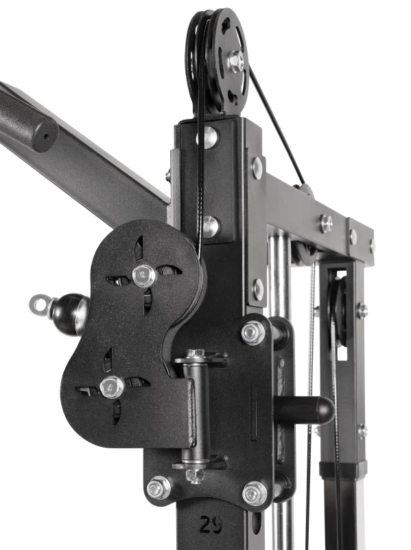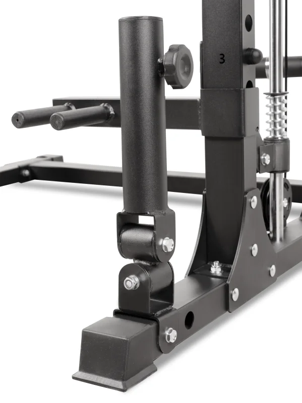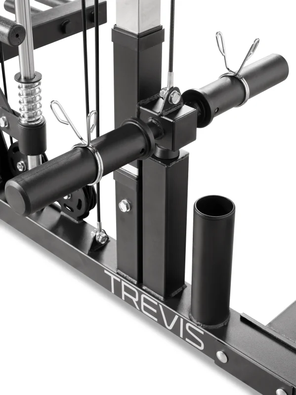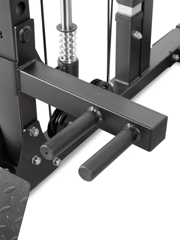 - Дополнительно ограничитель движения грифа, рукоятки: верхняя тяга, для кроссовера 2 шт, прямая для тяги, Т-гриф. 4 валика для ног ф80 с регулировкой по длине (6 ур.), крюки для грифа 2 шт, подставка для ног (тяга горизонтальная), упор для отжимания. Пружинные замки для дисков 4 пары, накопители для дисков ф50 мм, стакан для грифа, стакан для хранения грифа. 31 уровней регулировки по высоте. Диаметр грифа 50 мм.