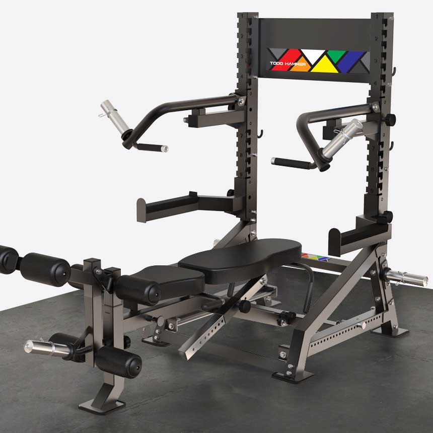 - 4 крюка для подвесного хранения рычагов для жима и страховочных упоров.