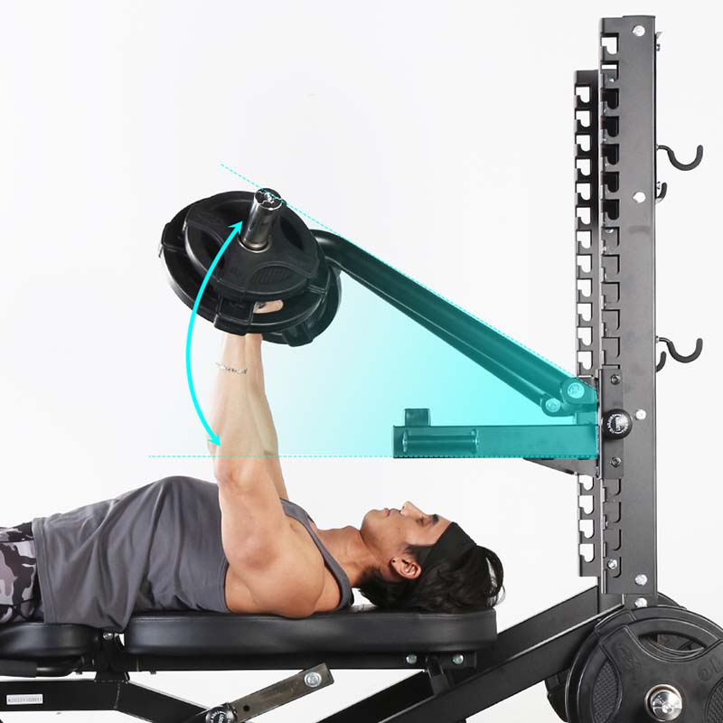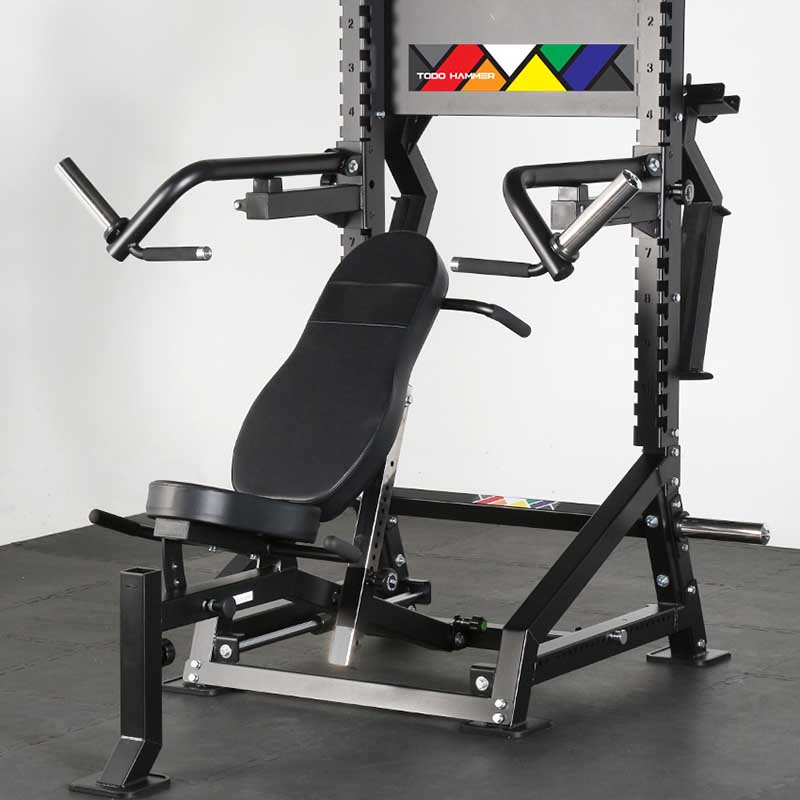 - жим штанги от груди со страховочными упорами - горизонтальный, с положительным и отрицательным углом,