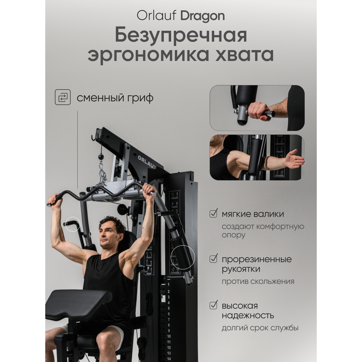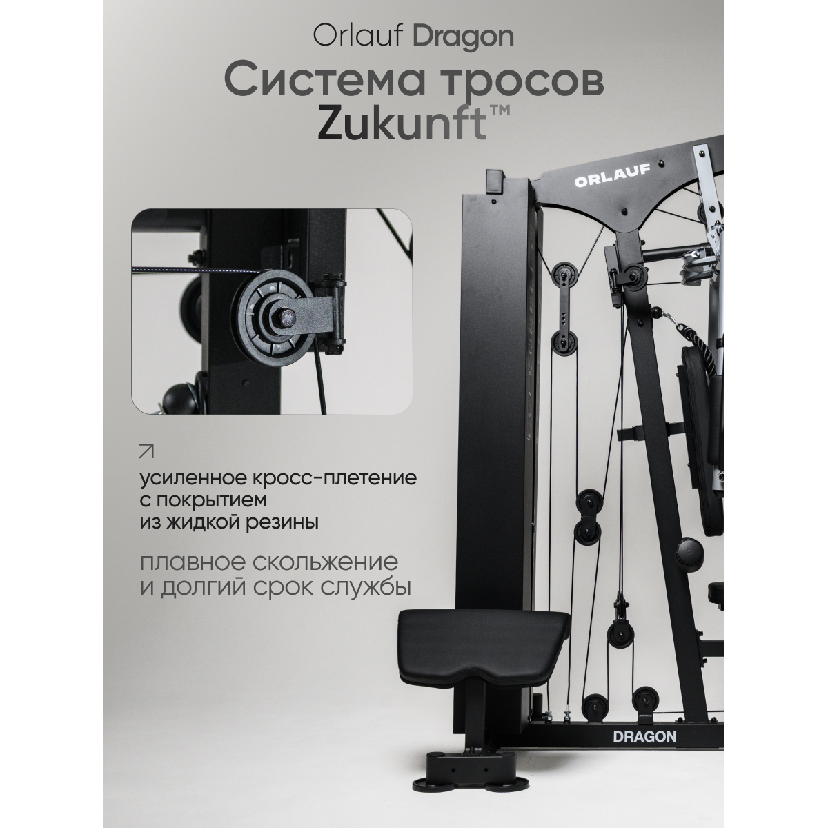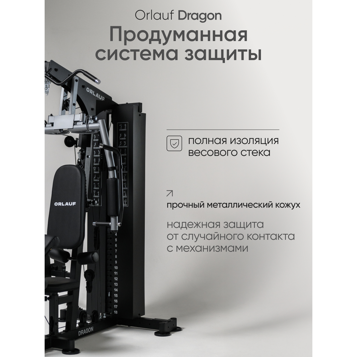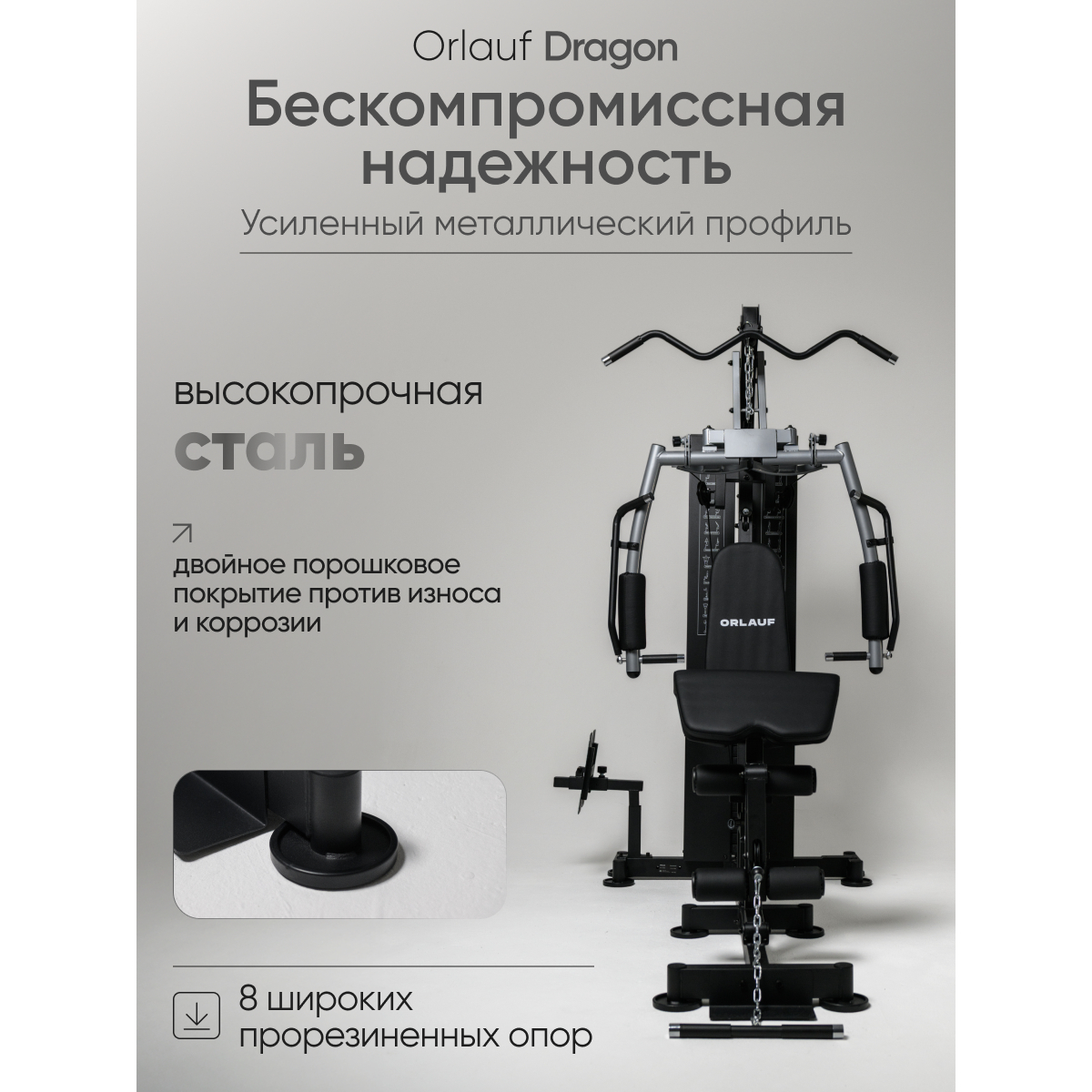 Мультистанция Orlauf Dragon — это ваш персональный фитнес-зал премиум-класса , объединяющий мощь целого парка профессионального оборудования в одной монолитной конструкции. Каркас из усиленной стали с двойным порошковым покрытием гарантирует максимальную устойчивость к износу и коррозии.