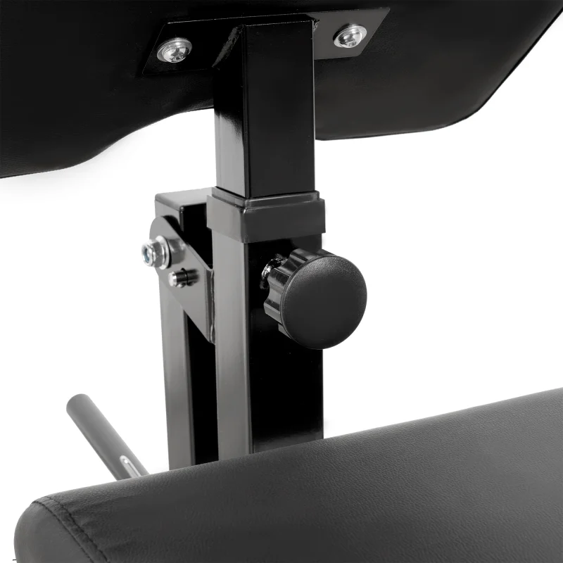 - Дополнительно накопитель для дисков ф 25, замок для дисков, 2 неопреновых валика для ног ф 6*12. Регулировка: парты бицепса - 3 уровня. Размеры подушек: сиденье - 36*36*4, спинка - 73*28.5*4, парта бицепса - 40*32*4.