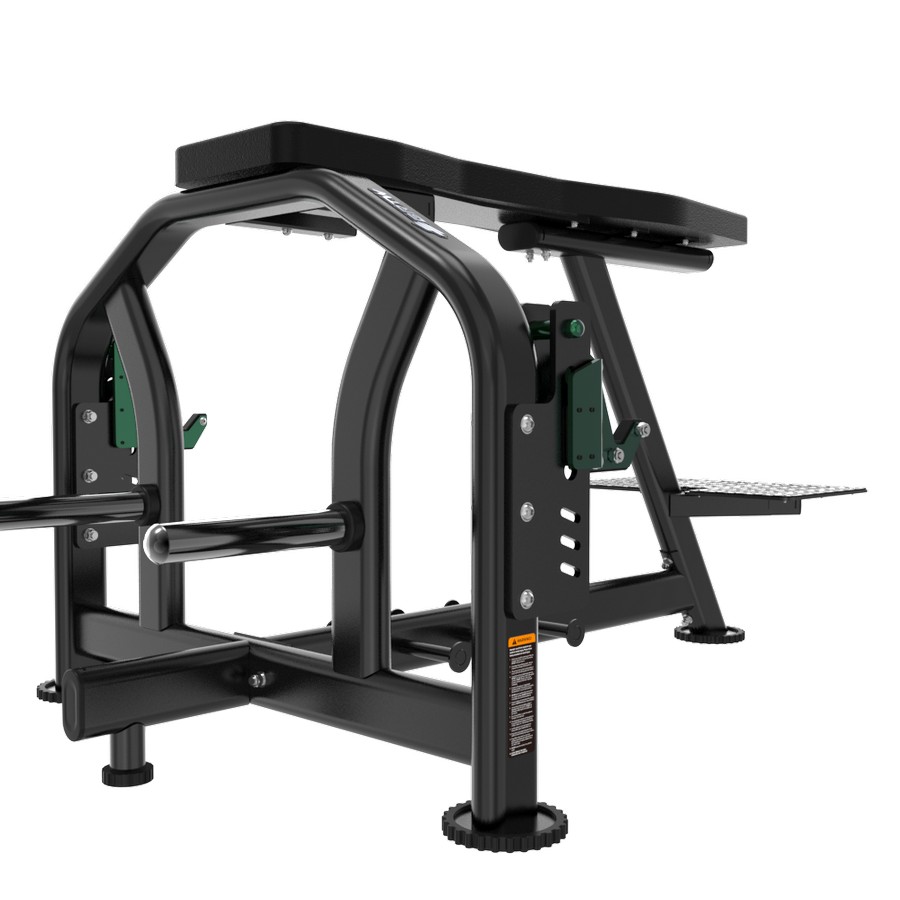 Обивка - ПУ кожа для проф. тренажеров, наполнение - износосотойкий ППУ, прошита двойной усиленной нитью. Гриф регулируется по высоте с помощью быстросъемных держателей под любой рост пользователяю. J-крюки снабжены надежными упорами из толстой резины и стали, конструкция "сэндвич". Смена позиции - штыревая, в отверстиях на перфорированной раме.