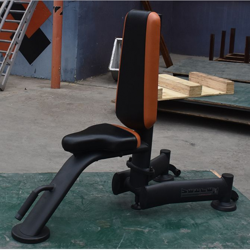 Силовой тренажер предназначен для различных видов жима, работы с гантелями. Упражнения выполняются в положении сидя. Тренажер состоит из рамной конструкции, мягких элементов – сиденье и спинка. Скамья предназначена для использования в коммерческих спортзалах и клубах с большой проходимостью.