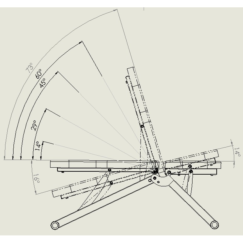 - Сиденье скамьи регулируется в двух положениях: 0 и 14 градусов.