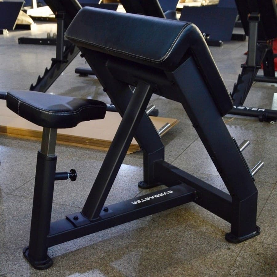Парта Скотта Gymmaster HS028 предназначена для изолированной тренировки бицепса рук. Упражнение выполняется в положении сидя. Тренажер состоит из рамной конструкции, мягких элементов – подушка для упора рук и сиденье.