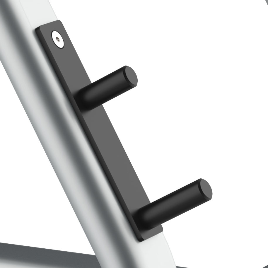 - Тренажер снабжен стальными фиксаторами штанги с двумя уровнями высоты - для безопасного выполнения упражнения и надежной фиксации грифа: выполнены из прочной хромированной стали и выдерживают нагрузку до 100 кг.