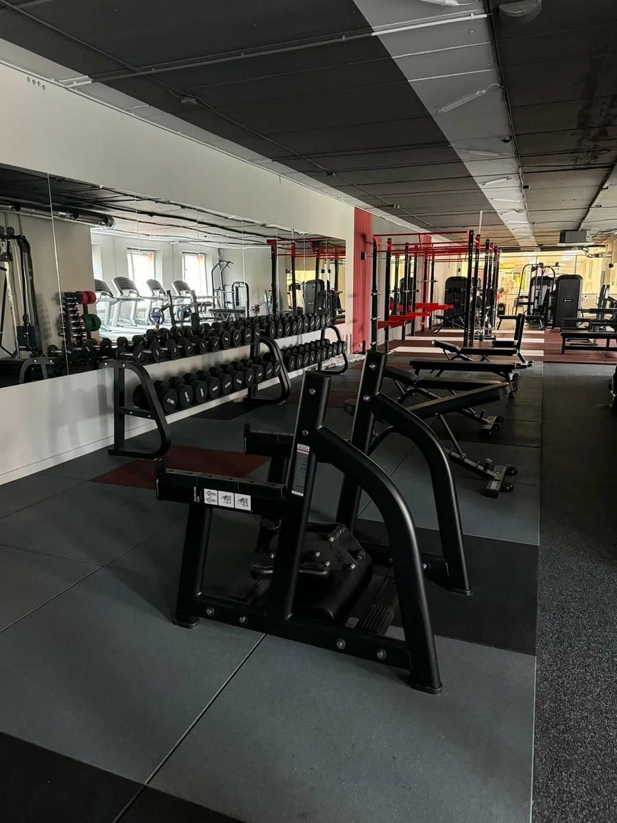 - Тренажер снабжен страховочными плинтами для безопасного выполнения упражнения: выполнены из прочной 3 мм стали и выдерживают нагрузку до 350 кг, поверхность покрыта толстыми резиновыми амортизаторами на болтовых креплениях, которые уменьшают шум и поглощают силу удара, защищают поверхность грифа и рамы от сколов и царапин.
