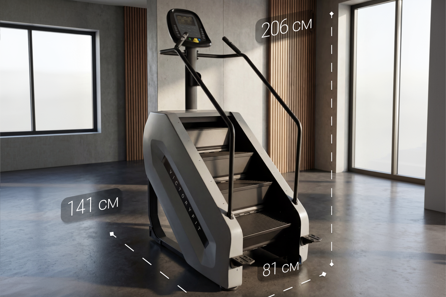 Габариты (Д×Ш×В): 141×81×206 см – внушительный и мощный тренажер. Вес без упаковки: 190 кг – устойчивая конструкция без вибраций. Работа от сети 220 В – простое подключение. Гарантия 12 месяцев – уверенность в качестве от VictoryFit.Идеальный выбор для корпоративных, фитнес залов, залов реабилитации Степпер VF-ST800 подходит для: Кардиотренировок Похудения и сушки тела Укрепления мышц ног и ягодиц Реабилитации после травм (при контролируемой нагрузке)
