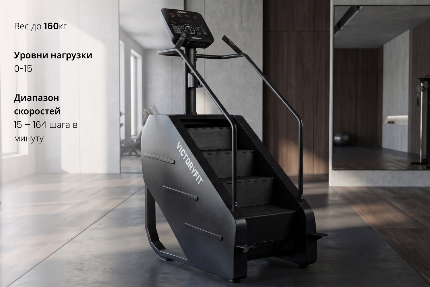 Ключевые преимущества и функционал: 1. Мощная кардионагрузка и жиросжигание Быстро увеличивает частоту сердечных сокращений, улучшая работу сердца и сосудов. Эффективно сжигает калории, ускоряя кислородный обмен в мышцах. 2. Проработка всех ключевых мышц ног Активно задействует бедра, икры, ягодицы и подколенные сухожилия. Движение в полном диапазоне обеспечивает равномерную нагрузку и укрепление мышц. 3. Настройка интенсивности под ваш уровень подготовки 15 уровней нагрузки – от легкой ходьбы до высокоинтенсивного интервального тренинга. Скорость шагов: 15–164 шага в минуту – подходит как для новичков, так и для профессионалов. 4. Профессиональная конструкция с высокой грузоподъемностью Максимальный вес пользователя: 160 кг – устойчивая конструкция и прочная рама. Большие ступени (56×23,5×22 см) – комфортное положение стопы при тренировке. Встроенный тензодатчик – контроль остановки движения ступеней. Эргономичные рукояти – отслеживание частоты сердечного ритма. 5. Удобство и дополнительные функции Подставка под бутылку – всегда под рукой запас воды. Внушительные размеры (141×81×206 см) – подходит для любых фитнес залов и медицинских учреждений для реабилитации. 6. Надежность и гарантия Профессиональный уровень – рассчитан на долгие годы интенсивной эксплуатации. Гарантия 12 месяцев – уверенность в качестве от производителя VictoryFit. Для кого этот степпер?Для спортсменов – высокоинтенсивные интервальные тренировки (HIIT). Для похудения – эффективное сжигание калорий за короткое время. Для укрепления ног и ягодиц – глубокая проработка мышц. Для реабилитации – мягкая нагрузка на суставы при восстановлении.