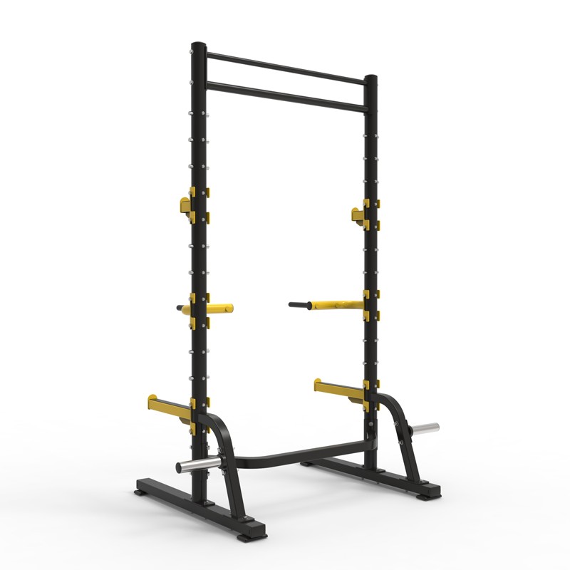 Силовая полурама Insight Fitness TS104 сочетает в себе стойку для приседаний, брусья с двумя хватами, страховочные плинты и крюки для штанги, которые регулируются по высоте в 12 позициях. Подходит для полупрофессионального использования.