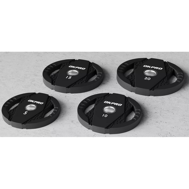 Диск обрезиненный тренировочный с двойным хватом OKPRO OK2005C - съемный снаряд, служащий для весовой регулировки штанги, гантельного грифа, силовых тренажёров. Диск оснащен стальным посадочным кольцом диаметром 51 мм, которое облегчает надевание на гриф и продлевает срок эксплуатации отверстия. Две большие прорези с выемками для пальцев и небольшие выпуклые площадки облегчают подъем снаряда с пола, со стойки или снятие со штанги.