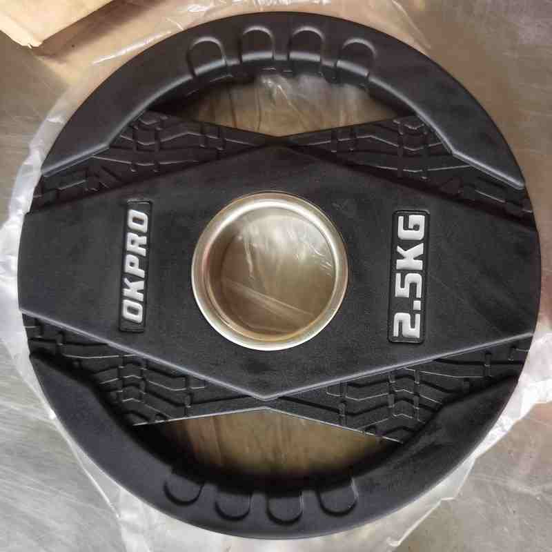 Диск обрезиненный тренировочный с двойным хватом OKPRO OK2005C - съемный снаряд, служащий для весовой регулировки штанги, гантельного грифа, силовых тренажёров. Диск оснащен стальным посадочным кольцом диаметром 51 мм, которое облегчает надевание на гриф и продлевает срок эксплуатации отверстия. Две большие прорези с выемками для пальцев и небольшие выпуклые площадки облегчают подъем снаряда с пола, со стойки или снятие со штанги.