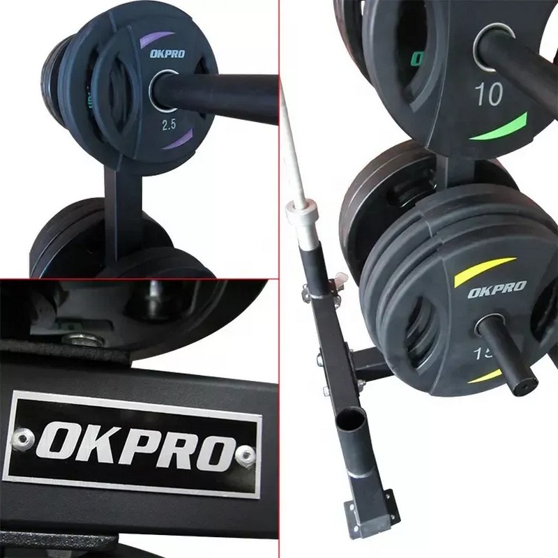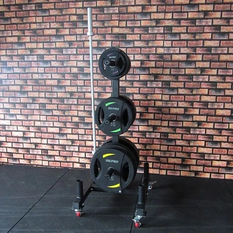 Комбинированная стойка для хранения олимпийских дисков и грифов. Имеет очень компактный вертикальный тип хранения. Мобильность стойки обеспечена 4 колесиками со стопорами. Стойка OKPRO, оснащенная колесами, легко передвигается, что позволяет без труда транспортировать ее в любое желаемое место. Поставляется в разобранном виде.