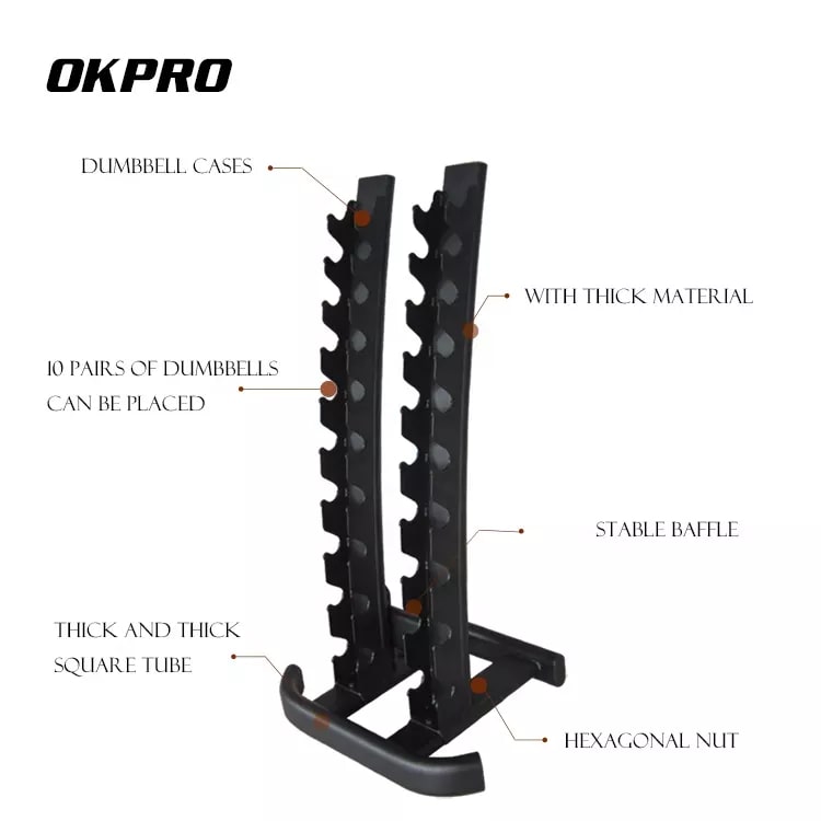 Вертикальная стойка для хранения 10 пар гантелей. Подходит для хранения гантелей от 1 до 10 кг.