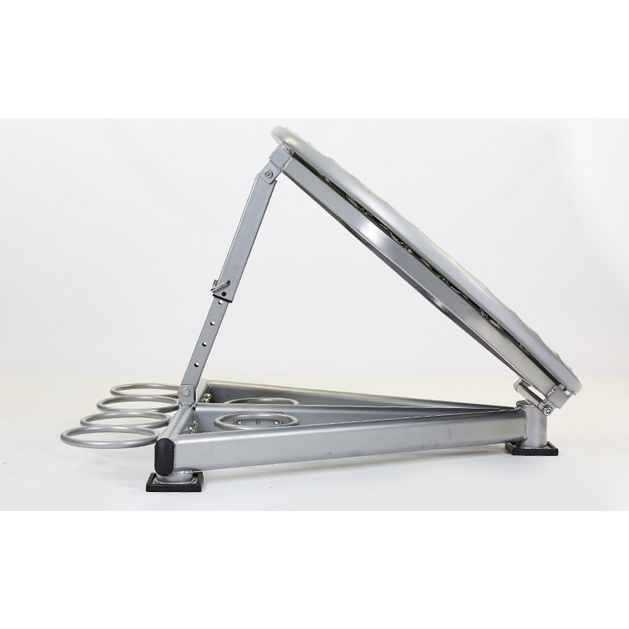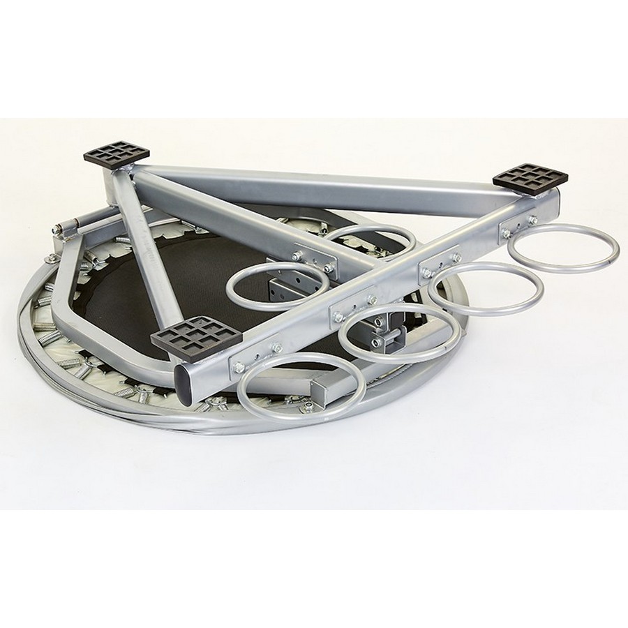 Материал батутной сетки - долговечный полипропилен, закрепленный на раме с помощью прочных оцинкованных пружин. Такая конструкция придает батуту нужную эластичность и упругость отскока. Угол наклона батута можно регулировать в 6 позициях - от 0 до 60 градусов, благодаря регулировочным отверстиям в стойке каркаса и стальному фиксатору.