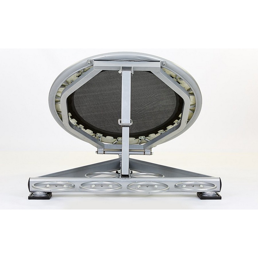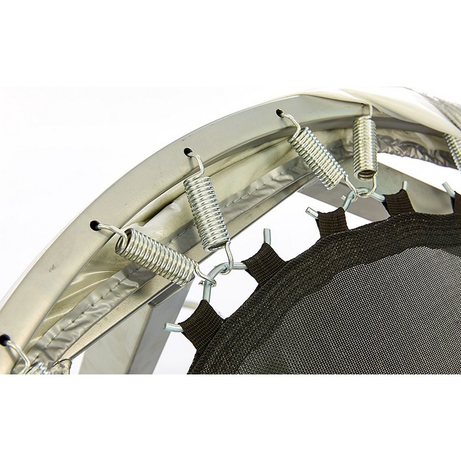 Модель OK0024A - это напольная стальная конструкция, состоящая из крепкой рамы и батутной сетки на пружинах. Стальной профиль рамы покрыт двумя слоями порошковой краски, защищающей батут от коррозии, сколов и царапин. Ножки тренажера снабжены резиновыми накладками для устойчивости и защиты напольного покрытия.