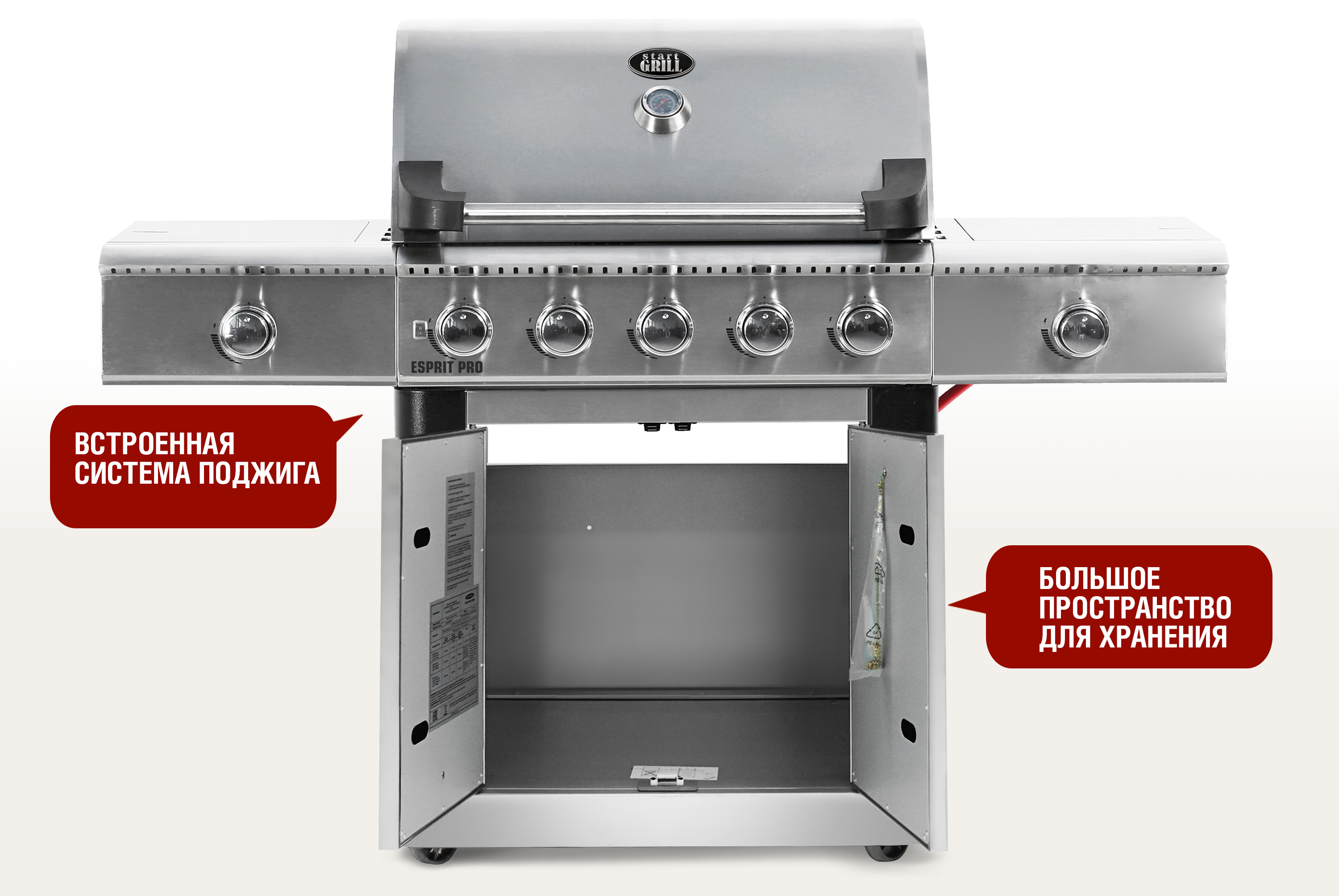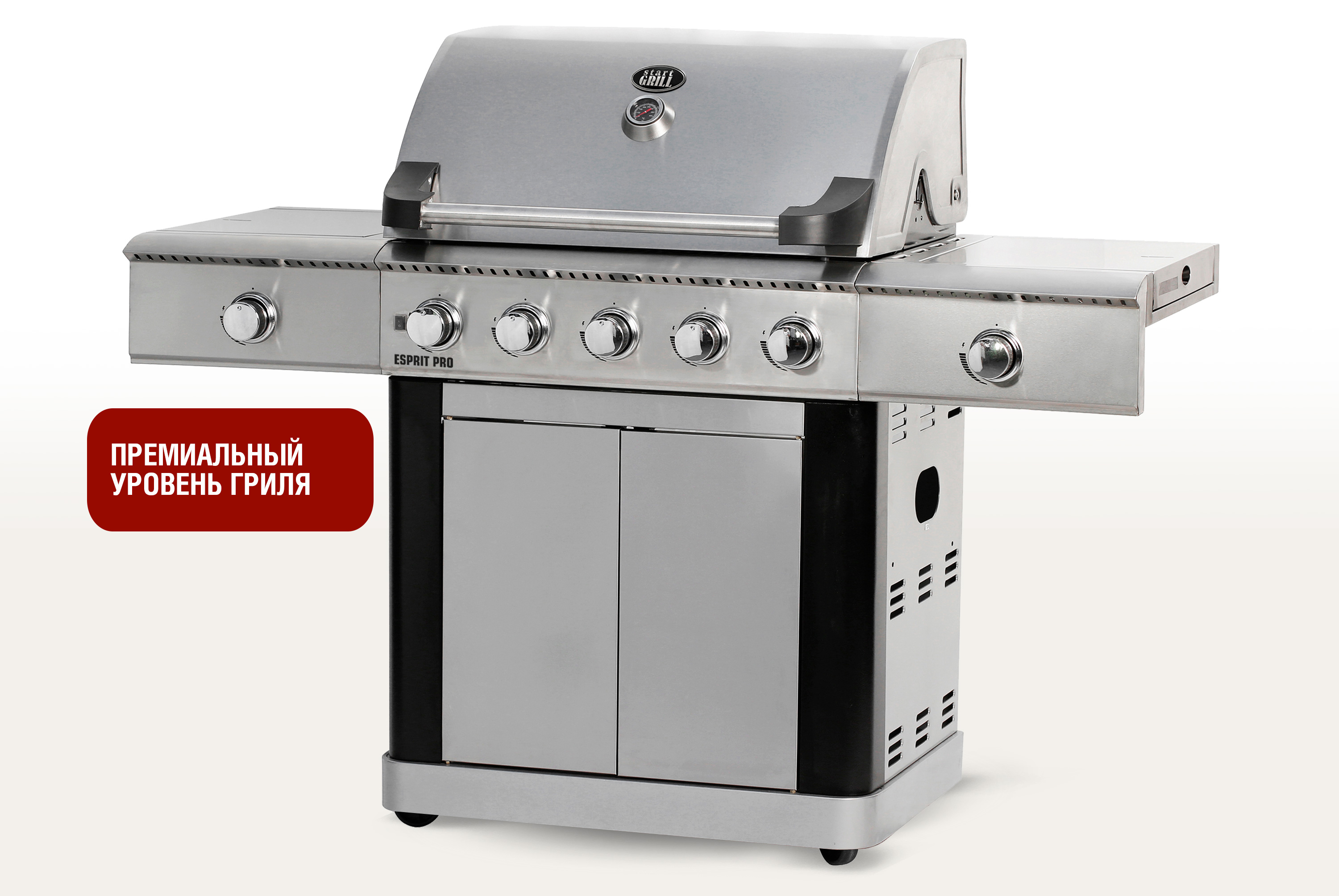 Esprit Pro от Start Grill – это большой газовый гриль премиального уровня, настоящая находка для ценителей комфортного приготовления барбекю на свежем воздухе. Большая площадь жарочной поверхности дают простор для кулинарного творчества, обеспечивая бережное приготовление любимых блюд, сохраняя природные вкусовые и полезные качества еды.