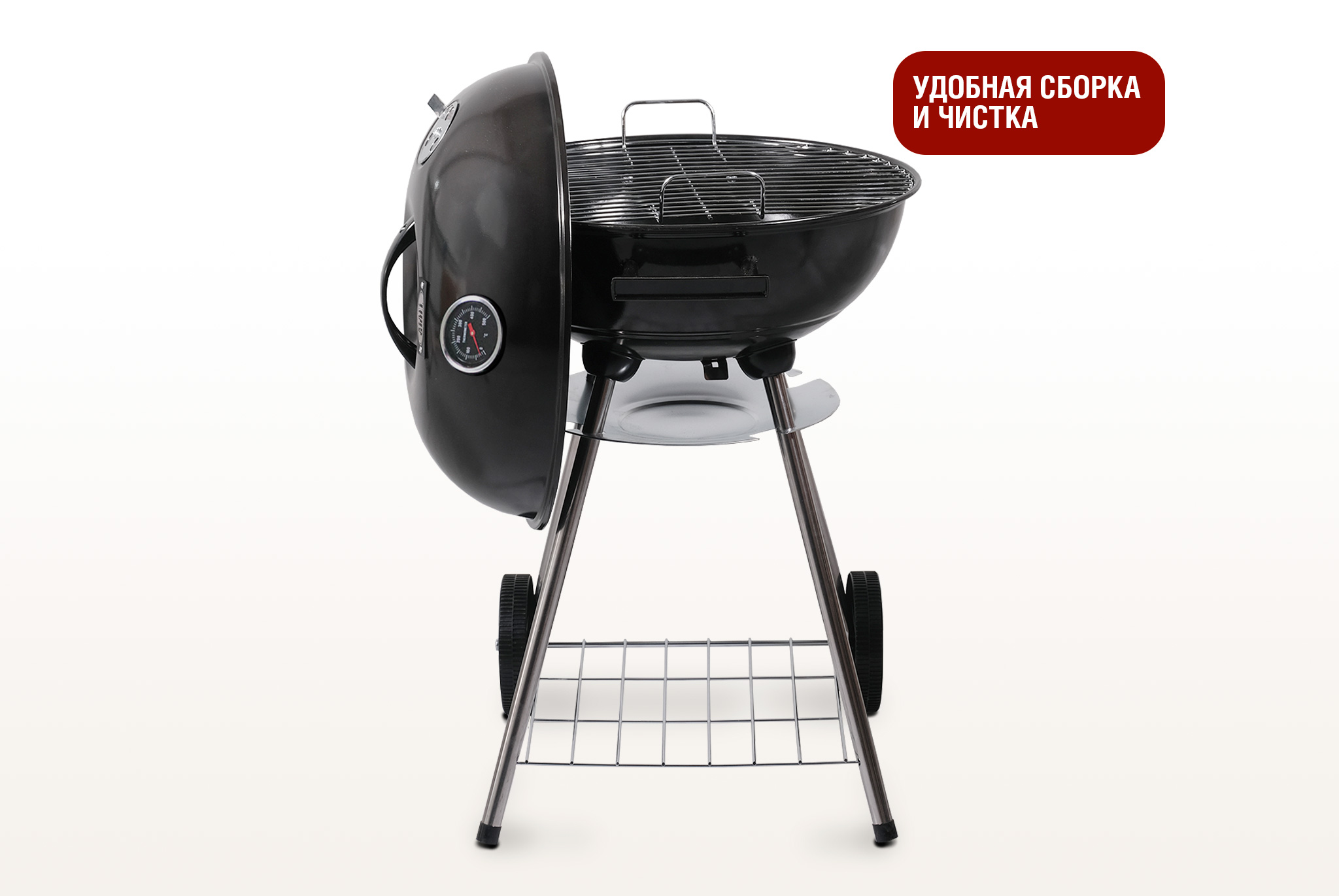 Гриль прост в обращении. Классическая сферическая форма гриля позволяет добиваться лучших результатов в приготовлении пищи. DERBY TERM идеально подойдет как для загородного отдыха на даче, так и для совместного проведения пикника с родными и друзьями на природе. Поверхность корпуса и съемной крышки покрыта фарфоровой эмалью. Диаметр жаровниnbsp;nbsp;- 43,5 см даст простор для кулинарного творчества. Алюминиевая тарелка предназначена для сбора золы. Для передвижения DERBY TERM на ножках присутствуют два колеса. Купить угольный гриль можно из любого города, сделав заказ в нашем интернет-магазине.