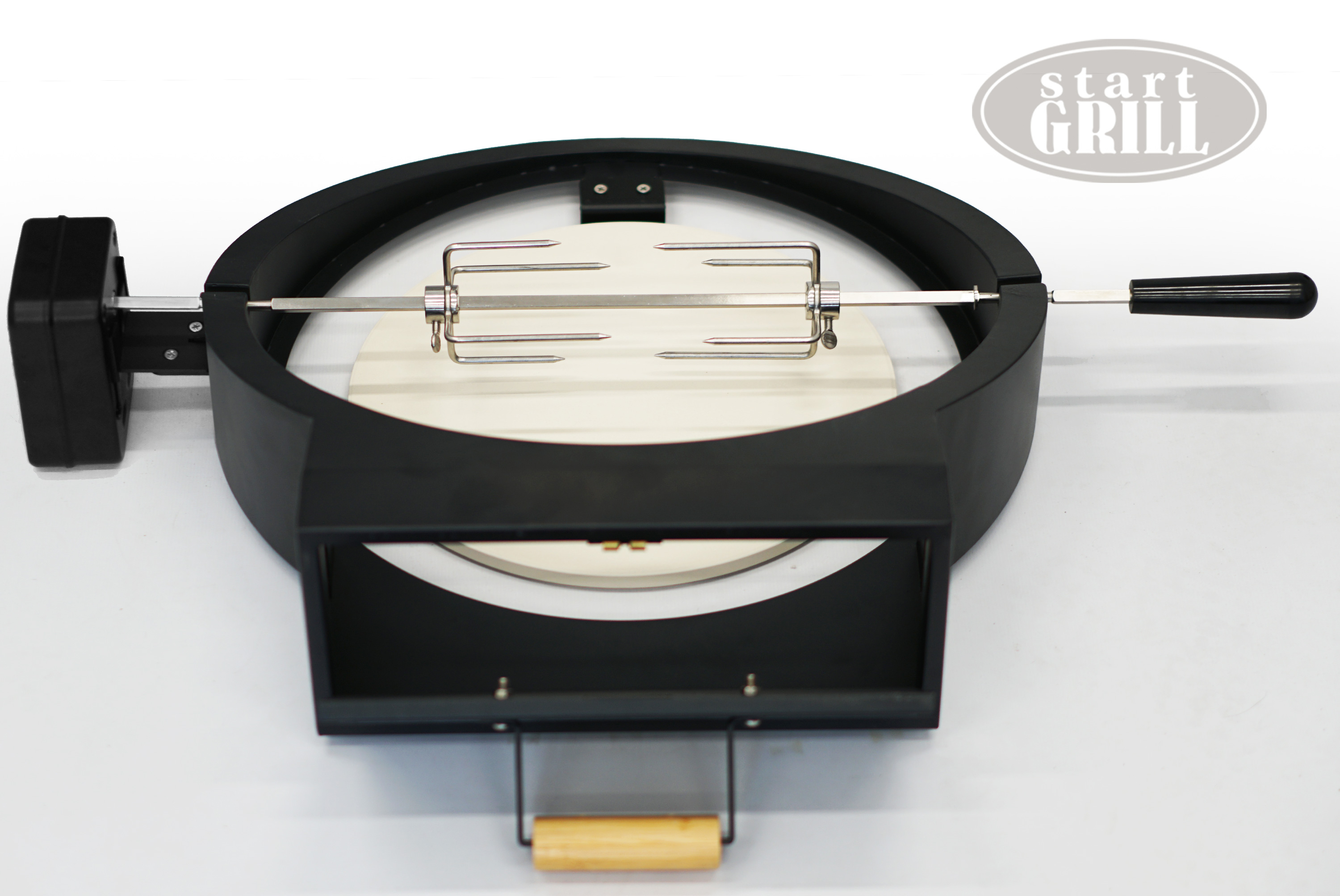 Данный вертел подходит для керамических грилей диаметром 21 или 22 дюйма. Так же данный вертел оборудован удобным лотком для приготовления пиццы.