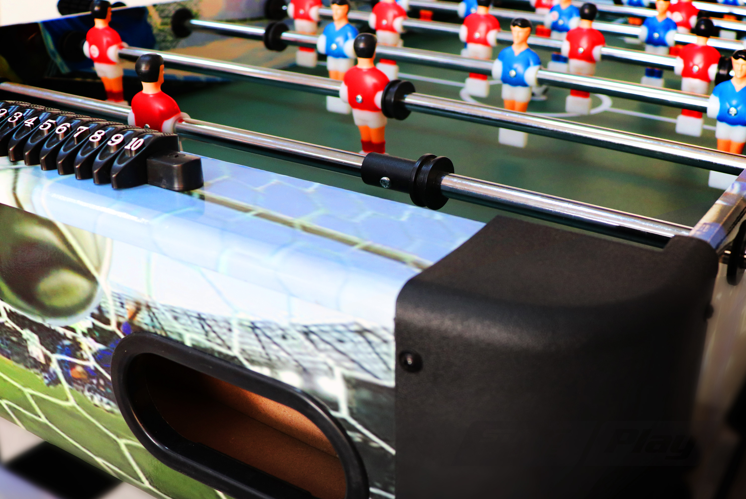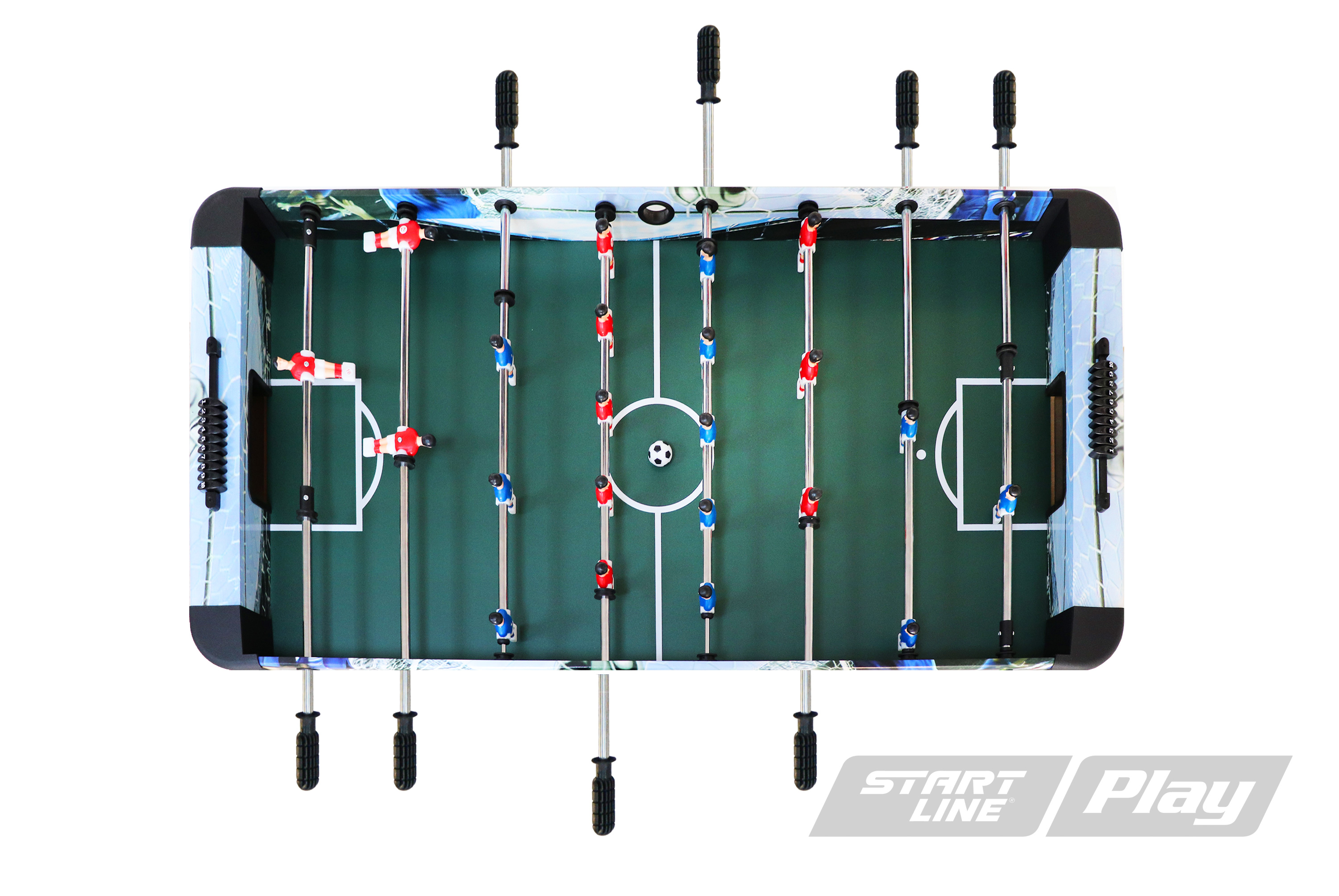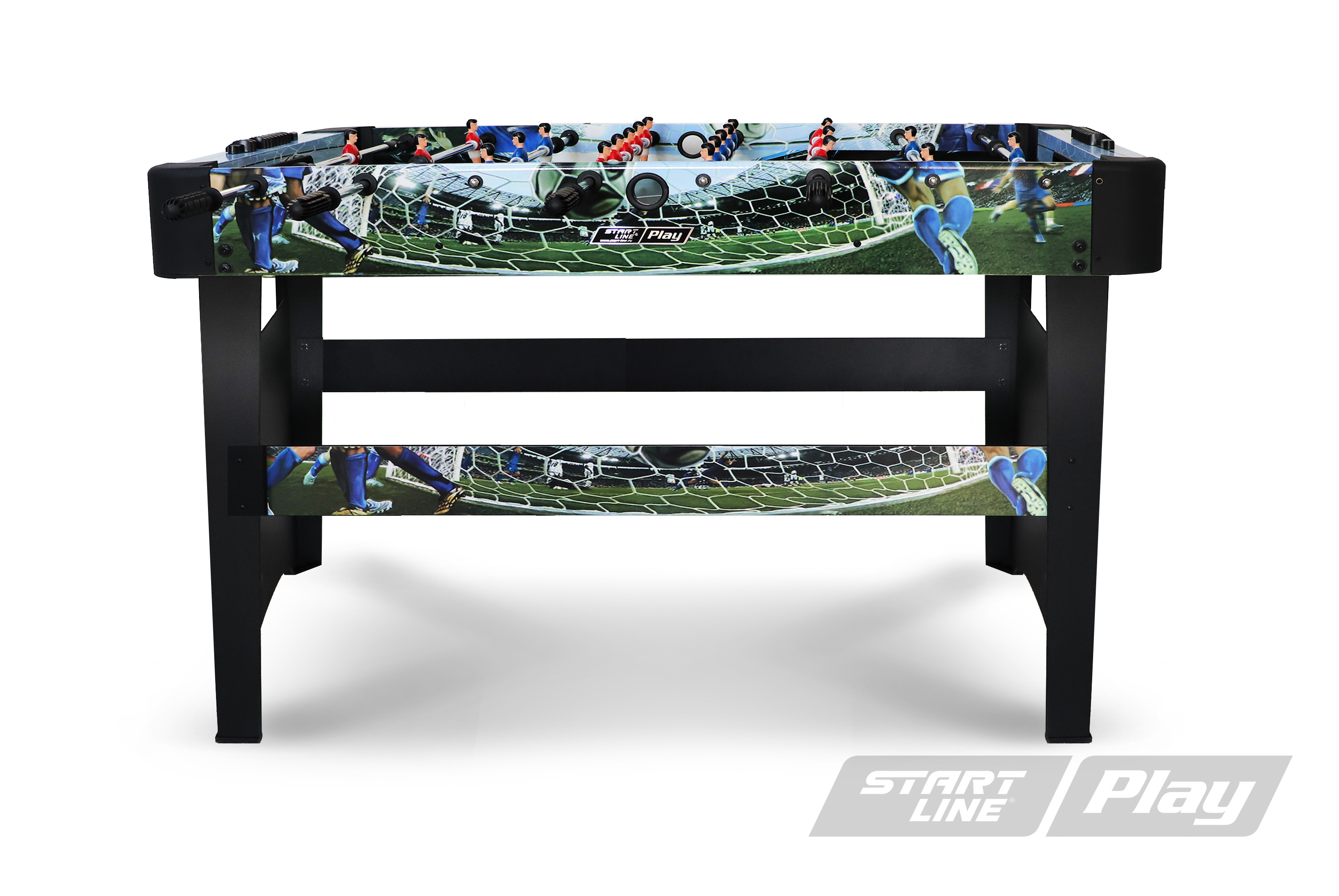 Игровой стол World game от Start Line Play – прекрасный выбор напольного мини-футбола для детей младшего и среднего школьного возраста. Он прекрасно подходит для веселого и интересного времяпровождения. Универсальная модель, которую отличает яркий дизайн, устойчивая конструкция, качество исполнения всех элементов отделки,включая фурнитуру. Углы корпуса закруглены, что повышает безопасность использования мини-футбола детьми. Корпус и опоры стола выполнены из МДФ, выдерживающего высокие нагрузки.