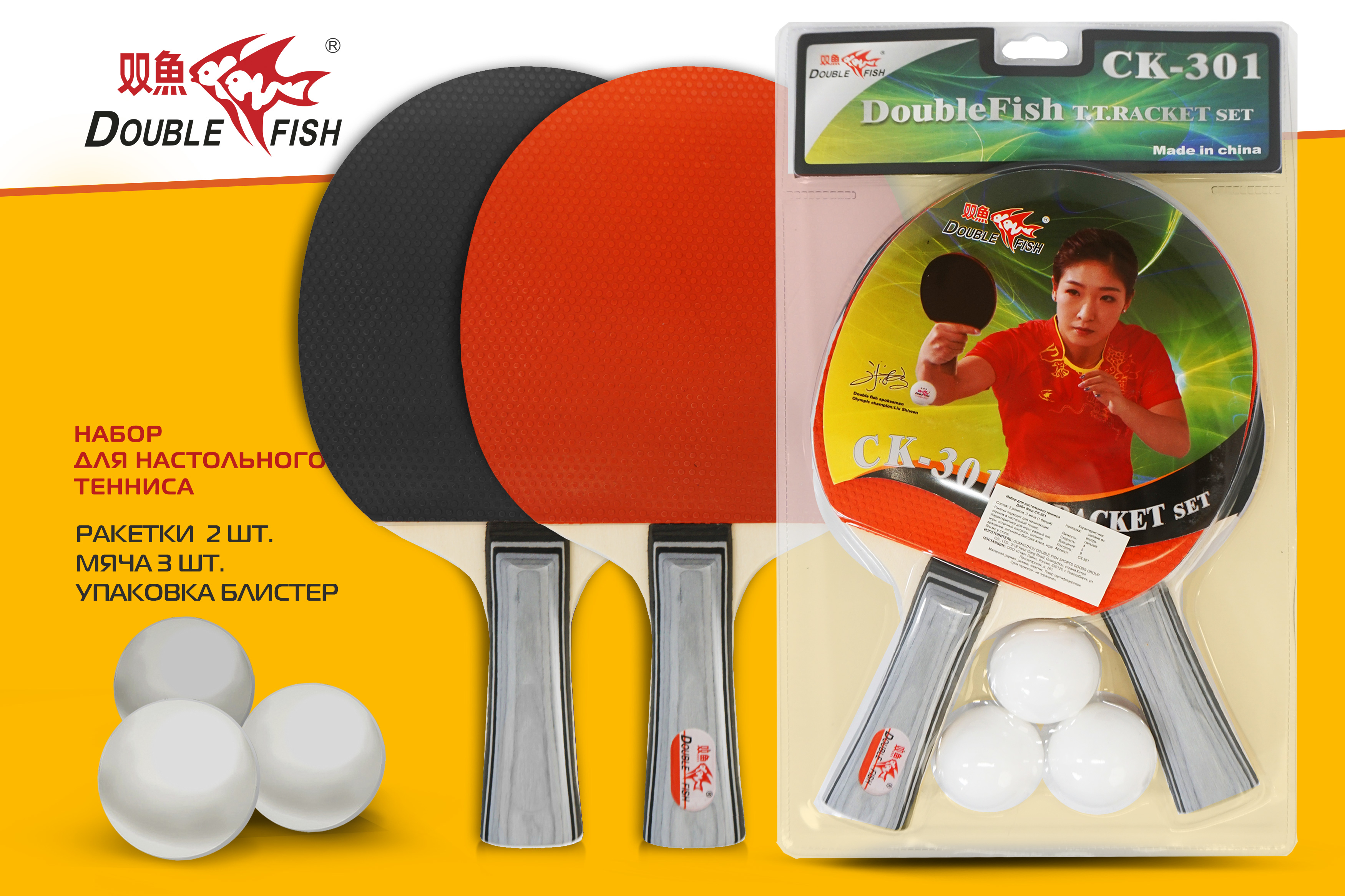 Набор DOUBLE FISH: 2 ракетки, 3 мяча
