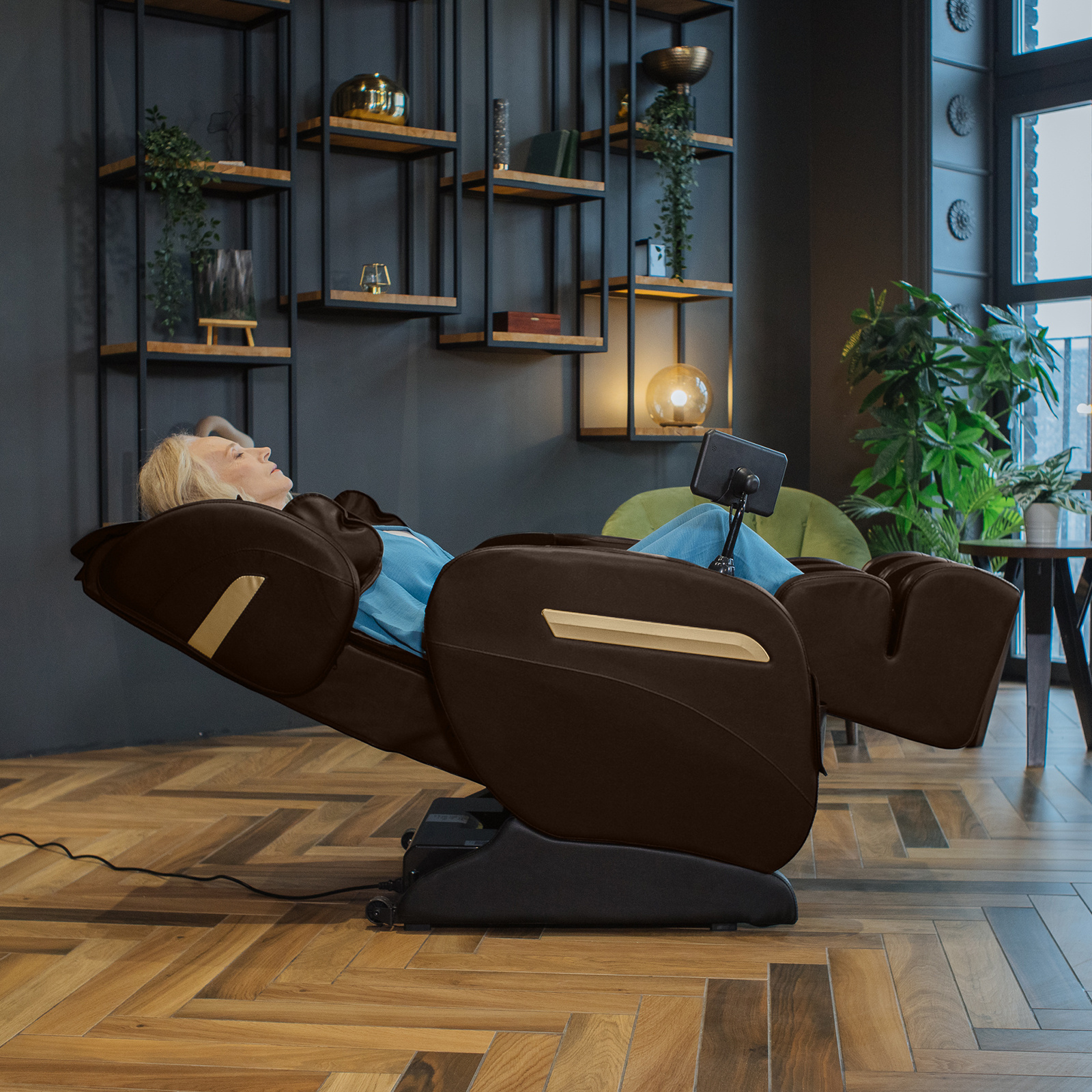 Выдвижная секция для ног закрытого типа выдвигается на 8 см, позволяя настроить оптимальное положение для каждого пользователя и обеспечивая качественный массаж стоп и ног. Режим нулевой гравитации Zero-G погружает пользователя в положение невесомости, что обеспечивает максимальное расслабление и повышает эффективность массажа.