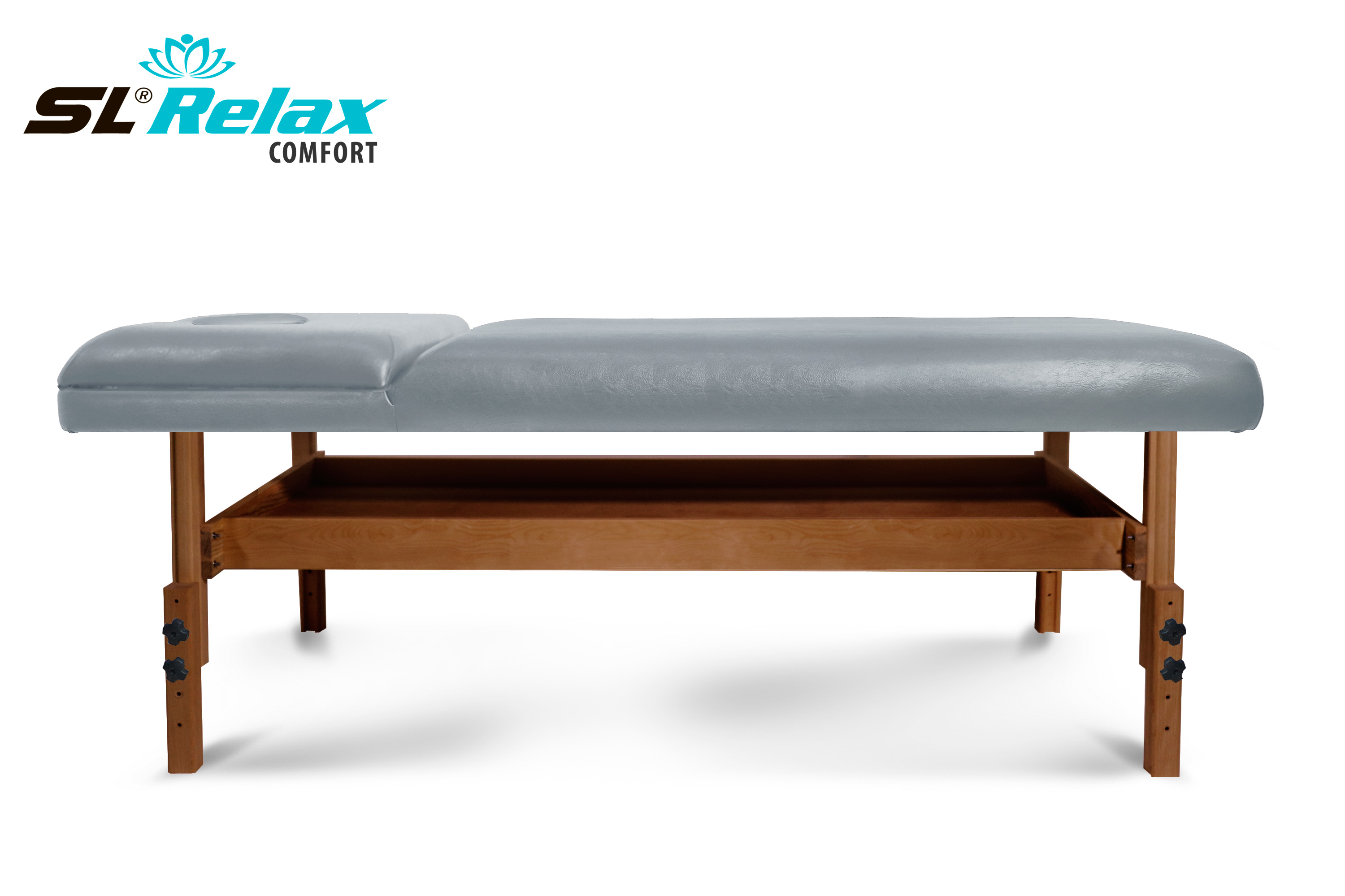 Стационарный массажный стол Comfort SLR-9 бренда SL Relax подойдет для профессионального массажа. Цвет обивки серый.