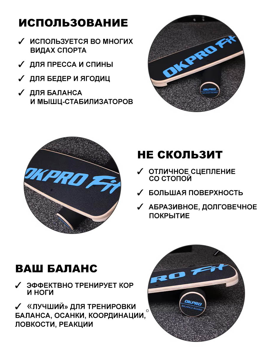 Балансборд OKPRO OK1323 подходит для использования дома и в спортзале.