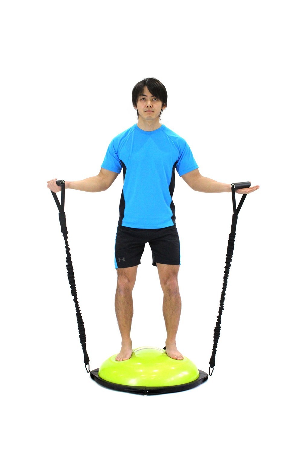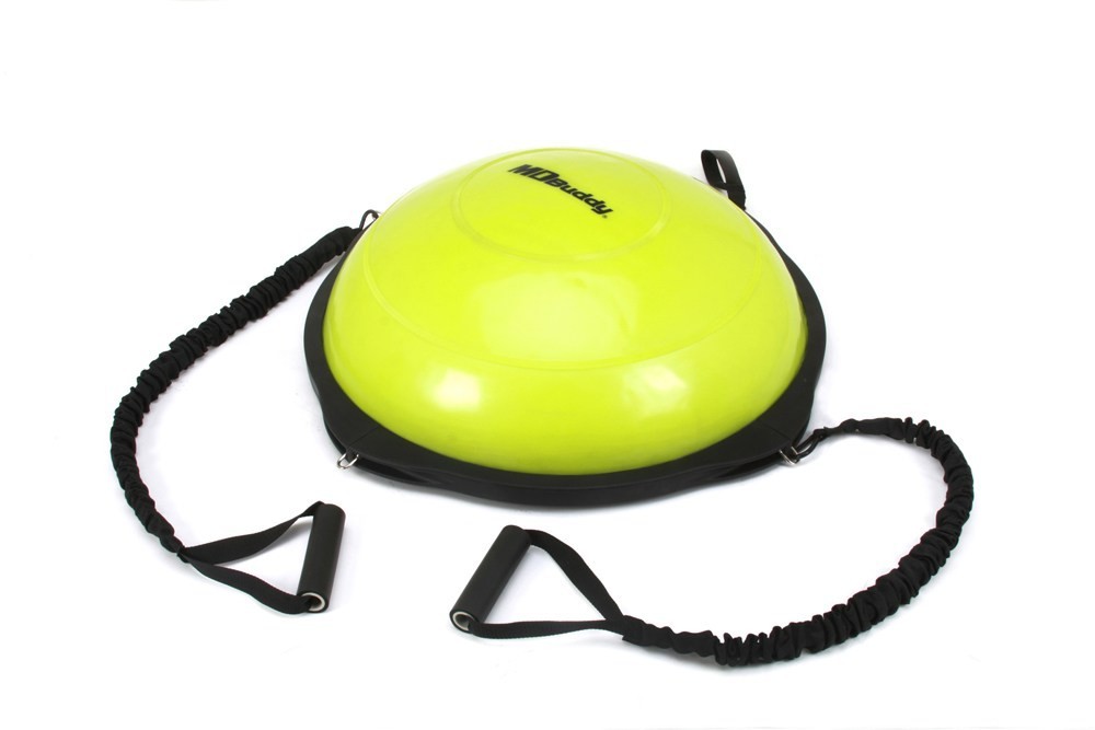 BOSU (полусфера) MD Buddy MD1215 используют на функциональных тренингах, иногда в пилатесе, есть и специальная интервальная тренировка на BOSU, в ней чередуется аэробная и силовая нагрузка.Наша компания является официальным представителем компании MD Buddy в России, что всегда гарантирует Вам защиту от подделок, так как все товары заказываются напрямую с завода и лучшее соотношение цена - качество в связи с отсутствием посредников.Bosu-полусфера представляет собой специальный тренажер для занятий фитнесом. Это пластиковая платформа, диаметр которой составляет около 63 см. Для удобства транспортировки у ее основания предусмотрены две ручки. На ней расположен резиновый купол-полусфера, высота которого составляет примерно 30 см. Можно сказать, что внешне босу напоминает половину фитбола.На нем можно стоять, прыгать, балансировать, садиться, опираться. Все это можно делать с обеих сторон, используя тренажер основанием вверх и вниз. Именно благодаря этой особенности босу и получил свое название, которое происходит от аббревиатуры Both Side Use – «использовать с обеих сторон». Сложность тренировок на босу зависит от степени его жесткости. Жесткость можно легко регулировать. Для этого необходимо просто выпустить из него немного воздуха.Комплектация: BOSU полусфера, 2 эспандеры в рукаве, насос.Вес: 7,8 кг.Вес брутто: 8,5 кг.Диаметр полусферы: 63 см.Общий диаметр: 70 см.Высота: 24 см.Размер упаковки (ДхШхВ): 66х66х8 см.Материал: ПВХ (полусфера), ПП (основа), термопластичная резина ТПР (покрытие рукояток).Максимальная нагрузка: 200 кг.