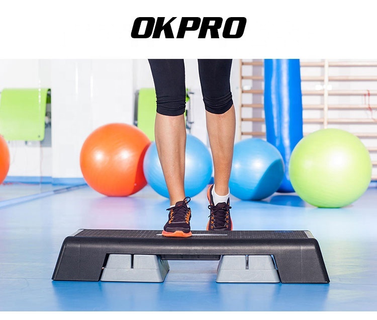 OKPRO OK1908 - регулируемая степ-платформа сборной конструкции. Для регулировки высоты установлены опоры изменяемой конфигурации с несколькими отделяемыми секциями. Дают возможность устанавливать 3 уровня высоты.
