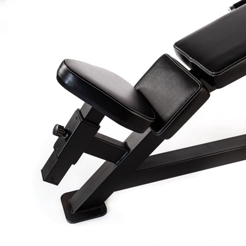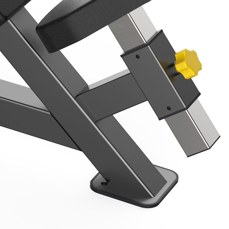 - Трехсекционная спинка с подголовником имеет специальный изгиб, который обеспечивает точное и надежное позиционирование во время выполнения упражнения.