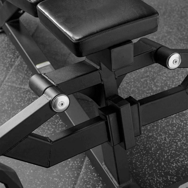 - Резиновые отбойники на раме исключают повреждения тренажера и смягчают удар при резком опускании рычагов.