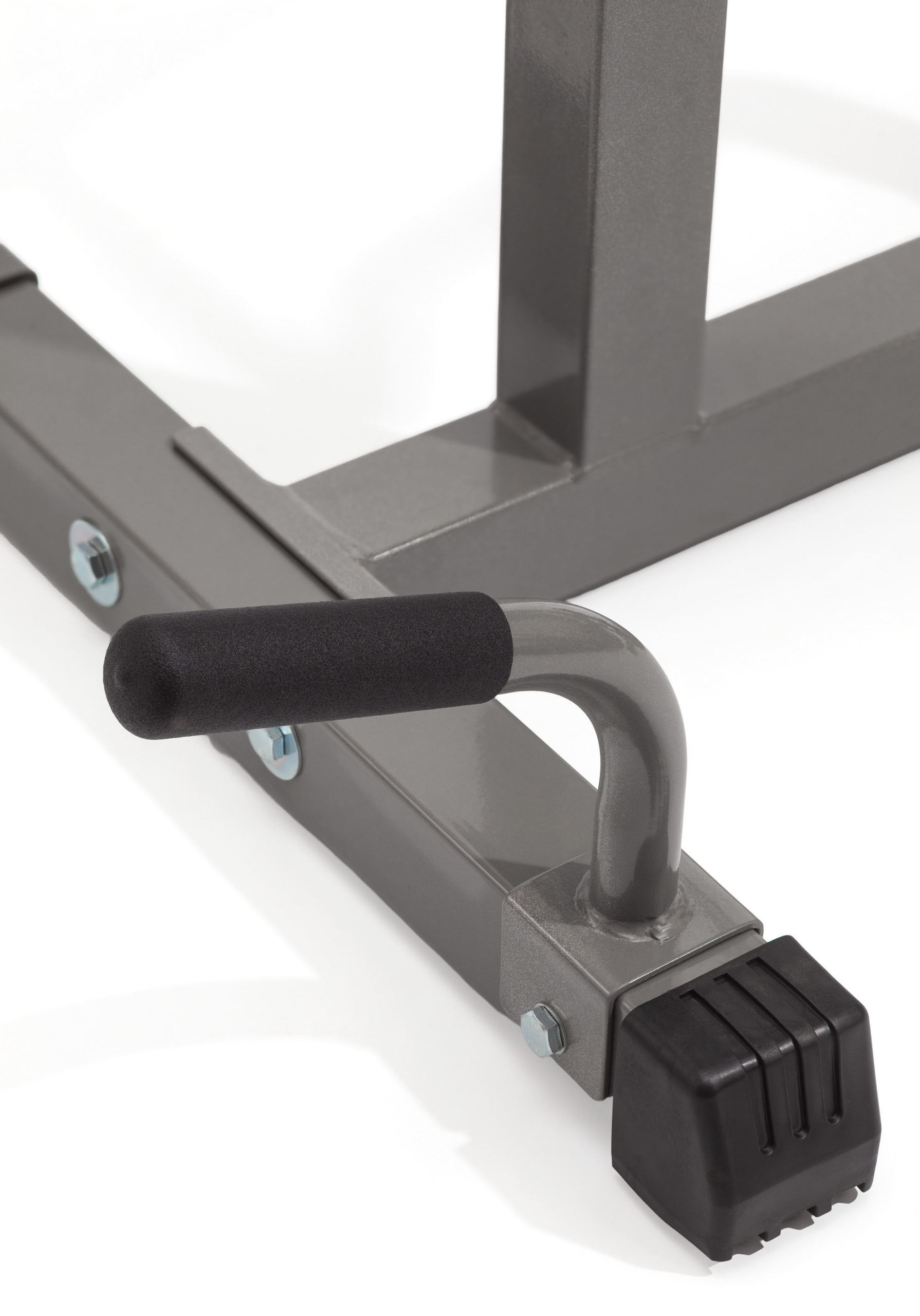 Практичность в деталях Тренажер совместим с дисками стандартного посадочного диаметра 50 и 25 мм. Встроенная полка удобно хранит блины (рекомендуемый вес до 50 кг), чтобы все необходимое было у вас под рукой.