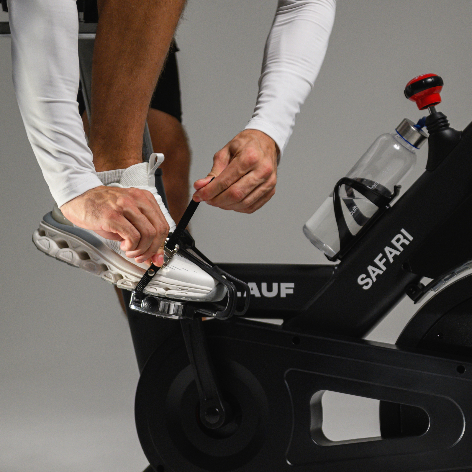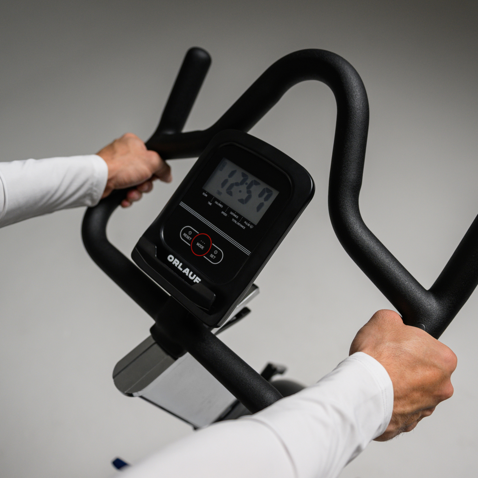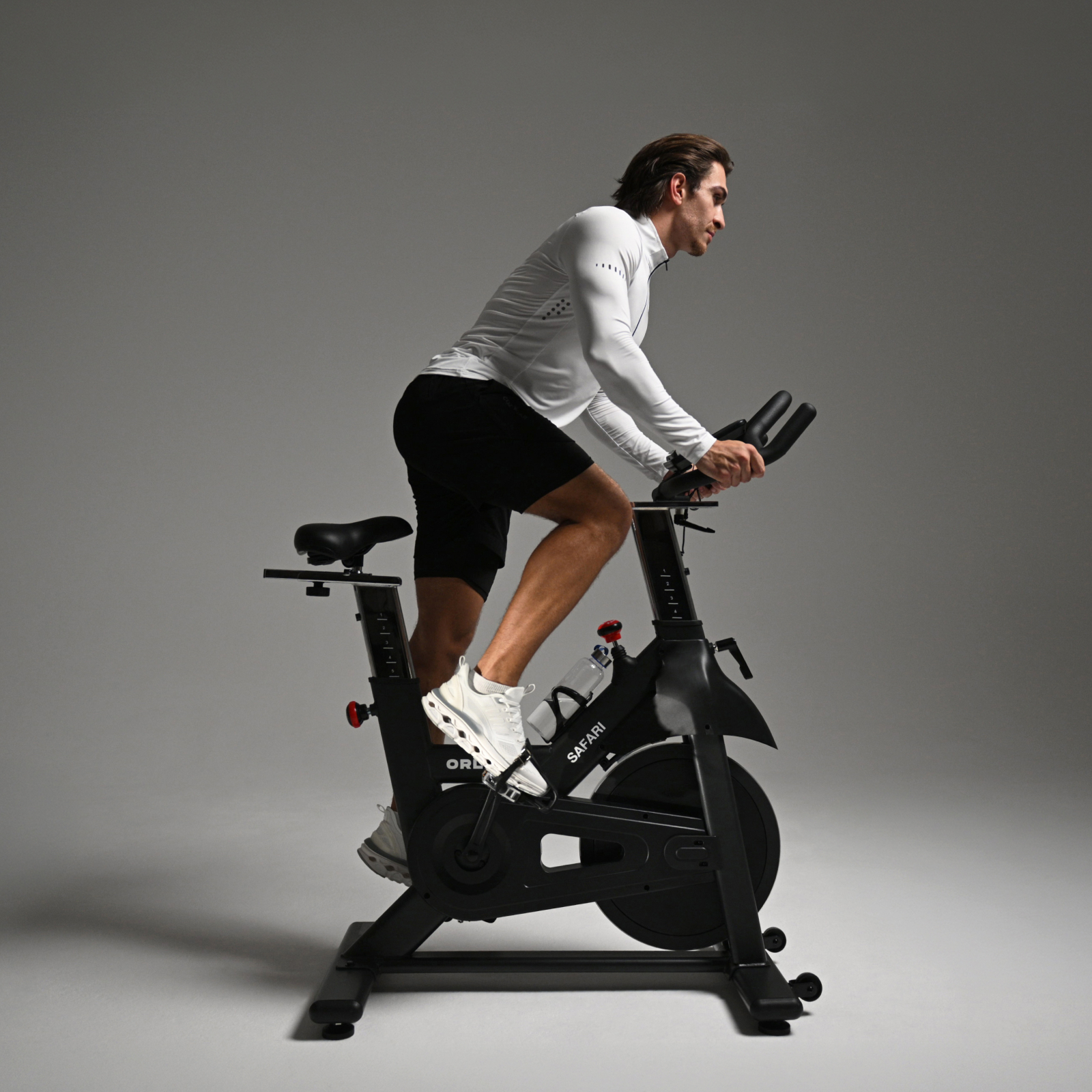 Orlauf Safari — коммерческий спин-байк для фитнес-клубов и домашнего использования. Ключевое преимущество — полная автономность: тренажер работает без электросети, что обеспечивает свободу размещения. Конструкция рассчитана на пользователей весом до 160 кг и вертикальную посадку для правильной биомеханики.