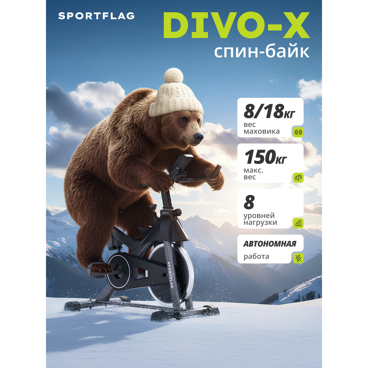 SportFlag Divo-X — это спин-байк для тех, кто ищет полную свободу в тренировках. Он создан для интенсивных домашних занятий, где важны независимость от розетки, долговечность конструкции и возможность полностью сосредоточиться на своих целях.