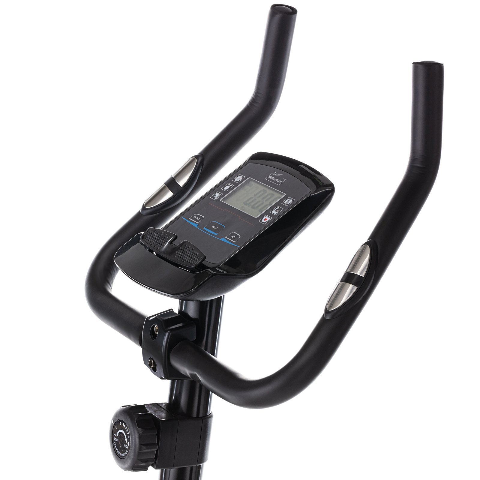 Велотренажер разработан с учетом анатомических особенностей: вертикальная посадка снижает нагрузку на спину и суставы, а педали с рифленой поверхностью и регулируемыми ремешками создают надежную фиксацию стопы. Информативный дисплей отображает все необходимые параметры тренировки, включая пульс, который измеряется встроенными сенсорными датчиками.